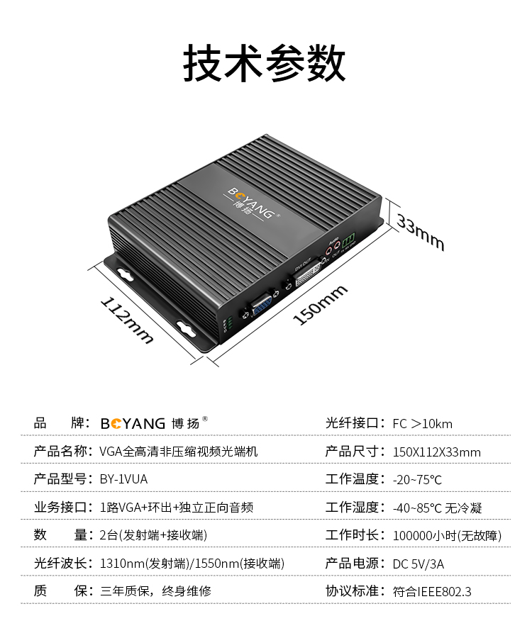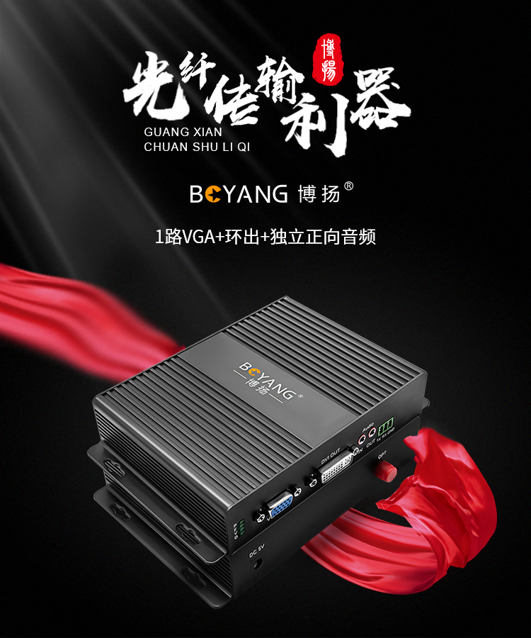 博扬(BOYANG) 非压缩全高清VGA视频光端机1路视频+环出+独立双向音频 VGA延长器一对 黑色