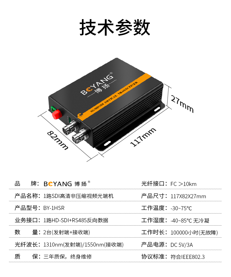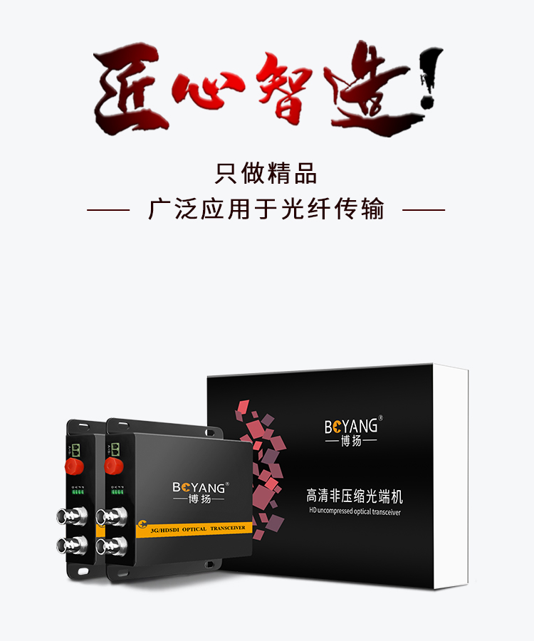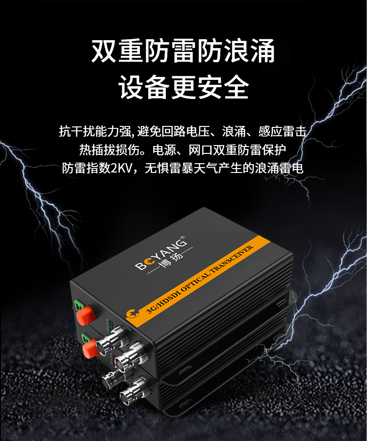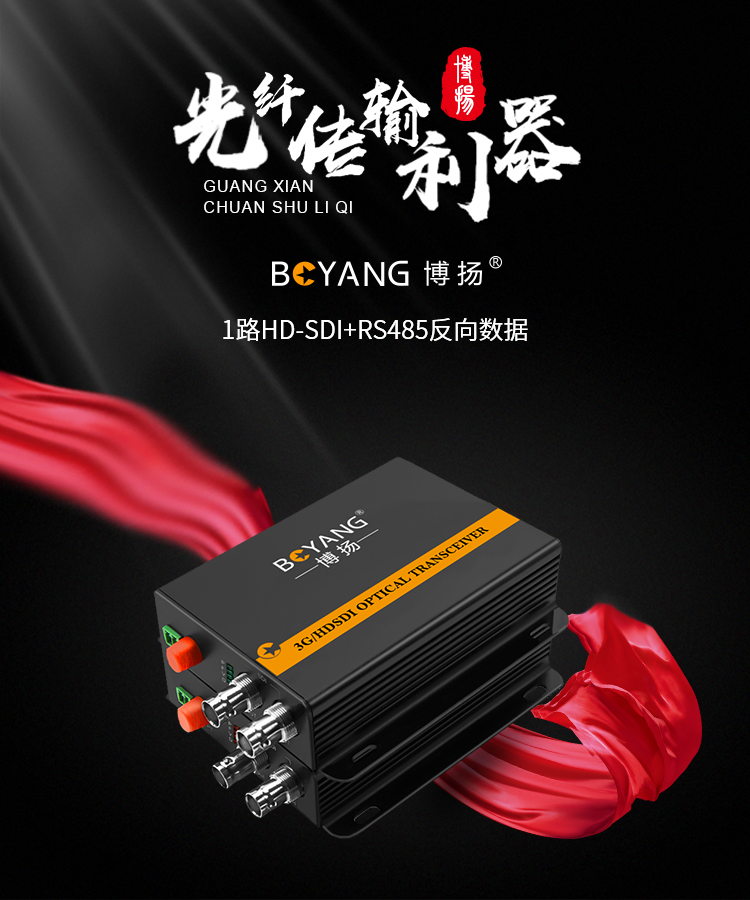 博扬(BOYANG) 非压缩全高清HD-SDI视频光端机1路视频+RS485反向数据 光纤收发器一对 黑色