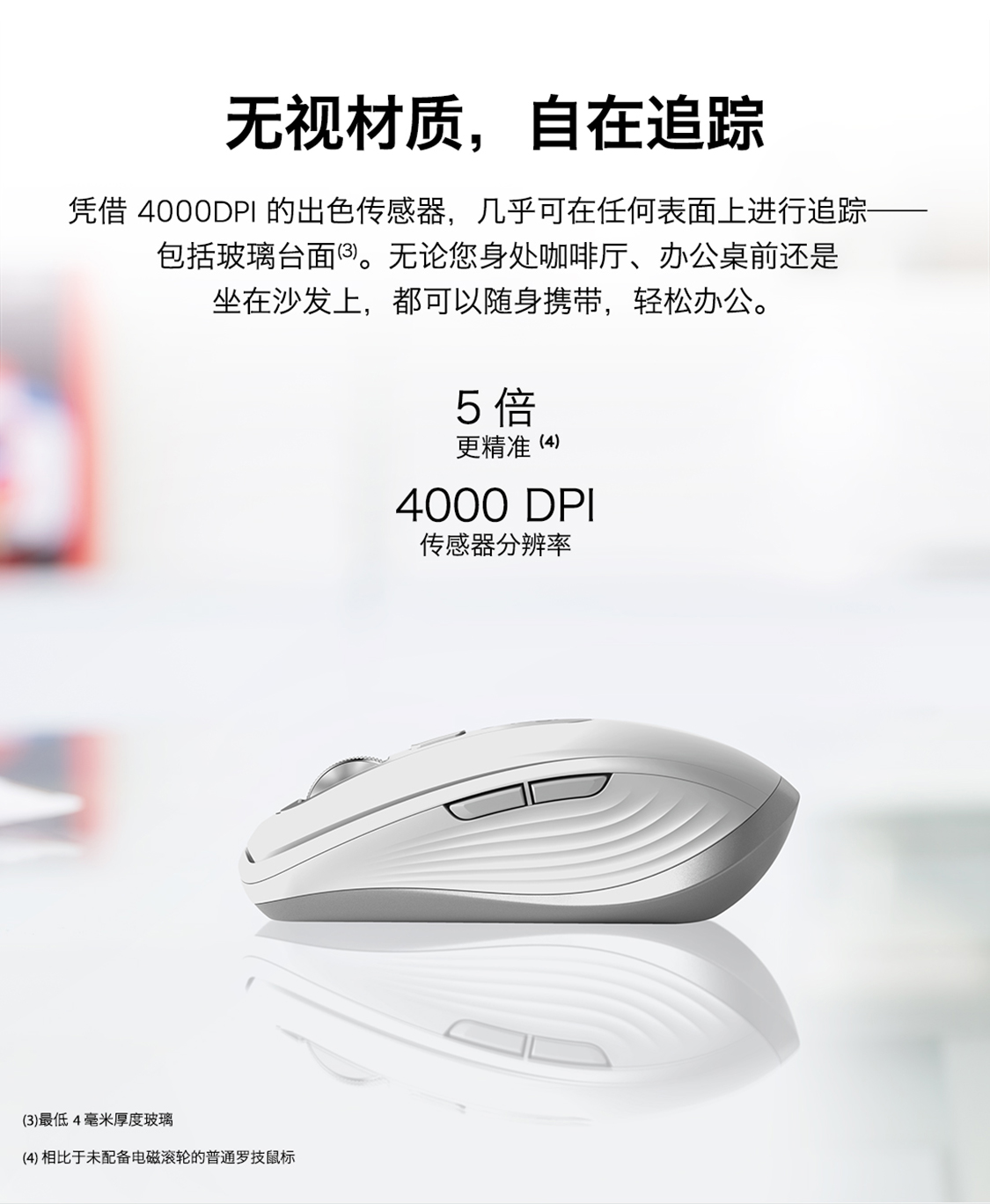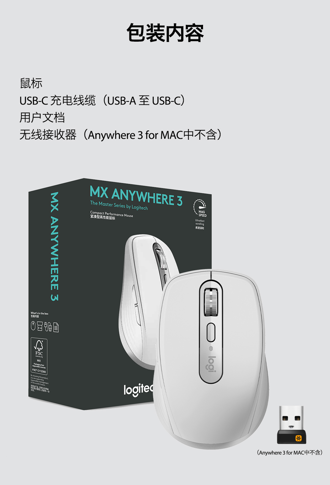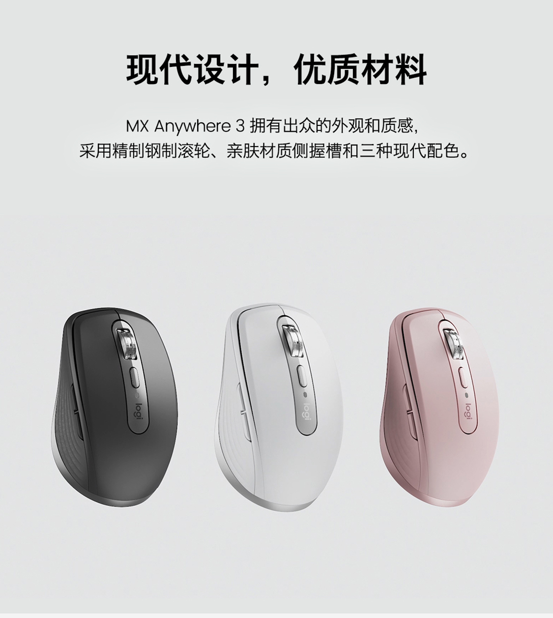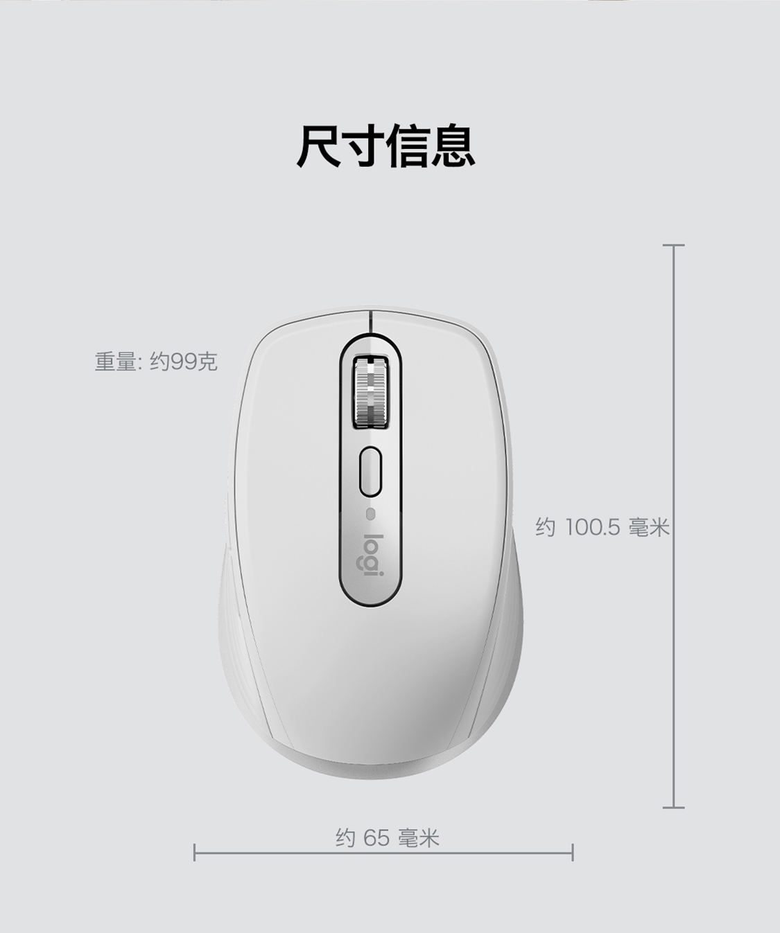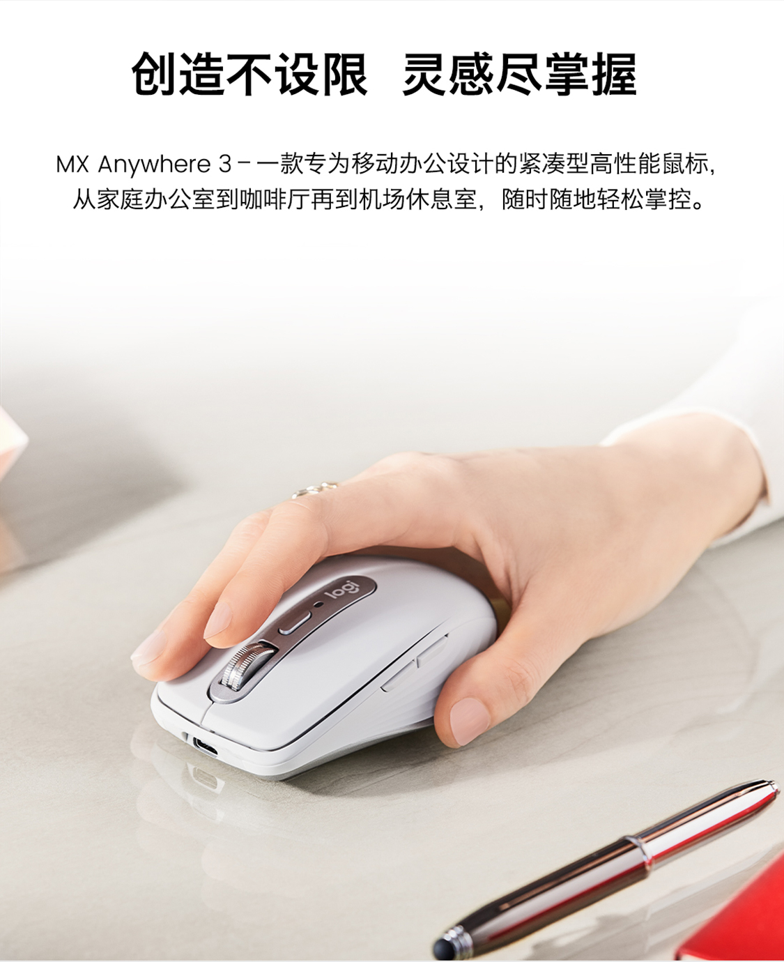 罗技(Logitech)MX Anywhere 3无线蓝牙双模鼠标 商务办公 便携鼠标 跨设备控制 【2.4G+蓝牙】标准版 银色