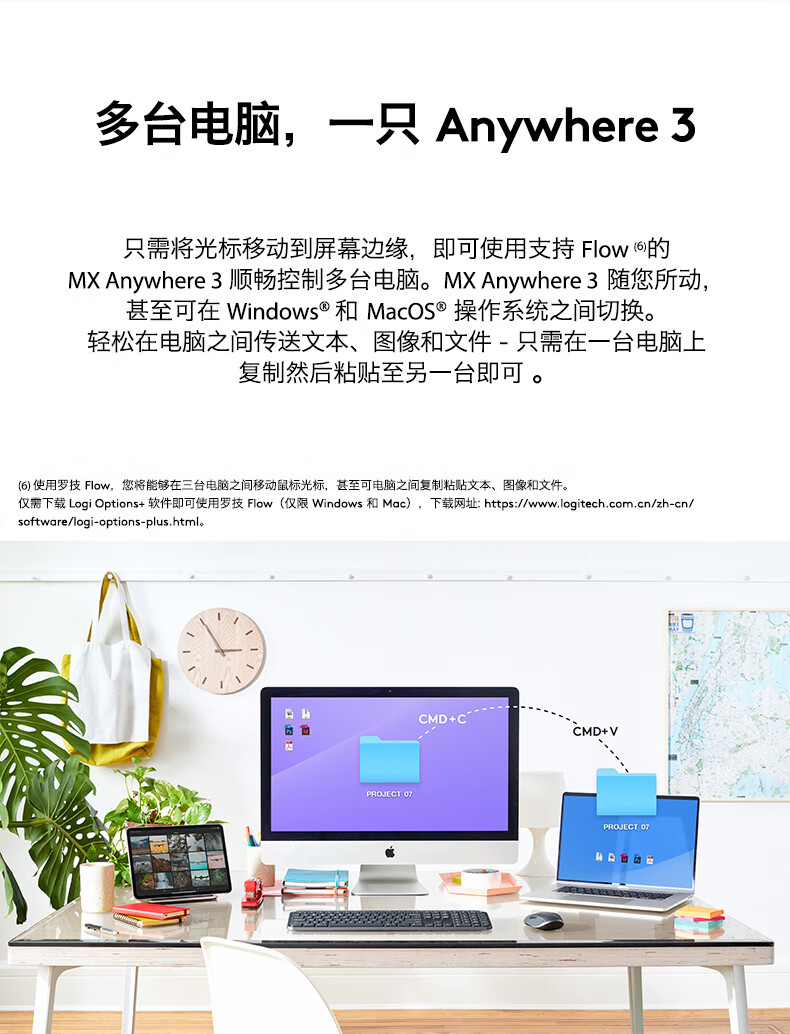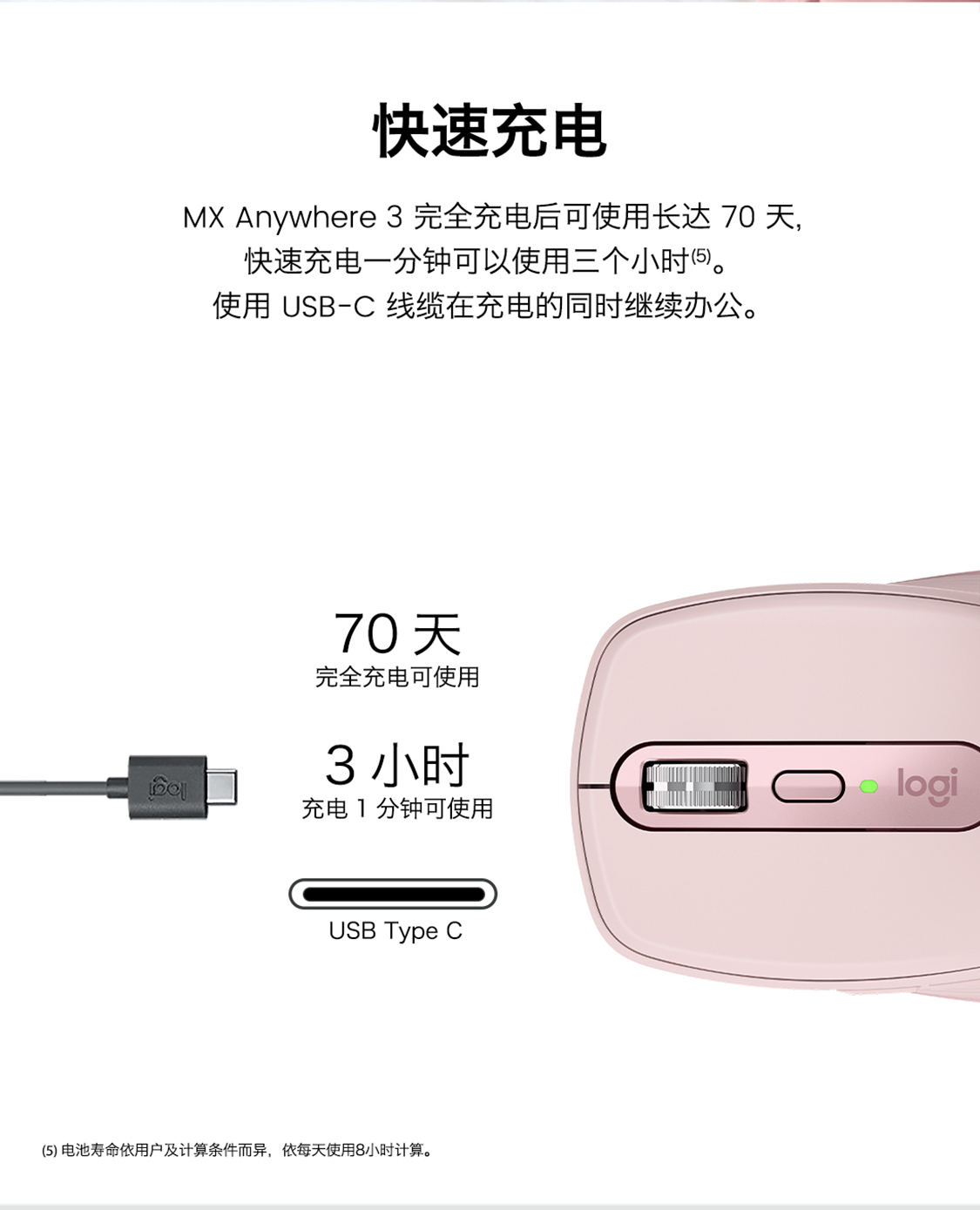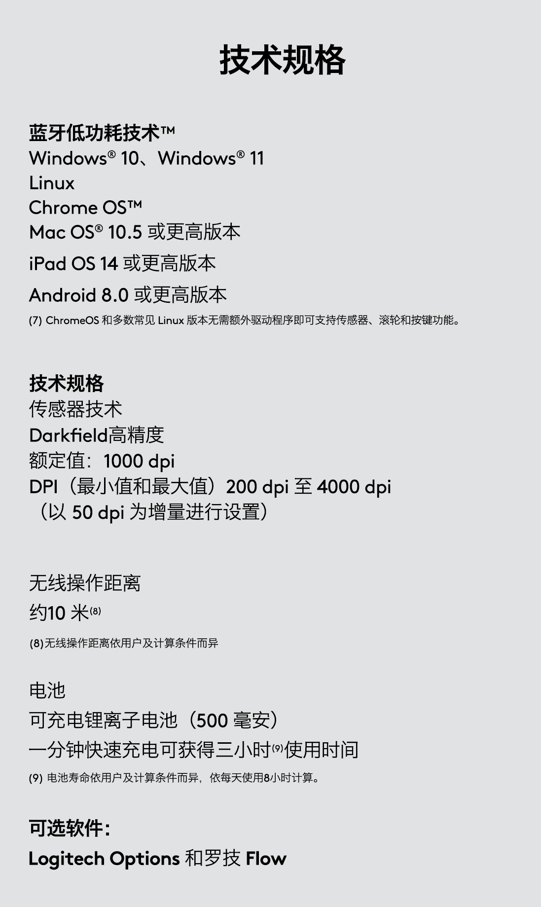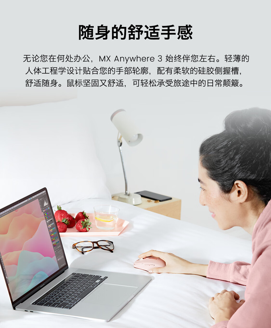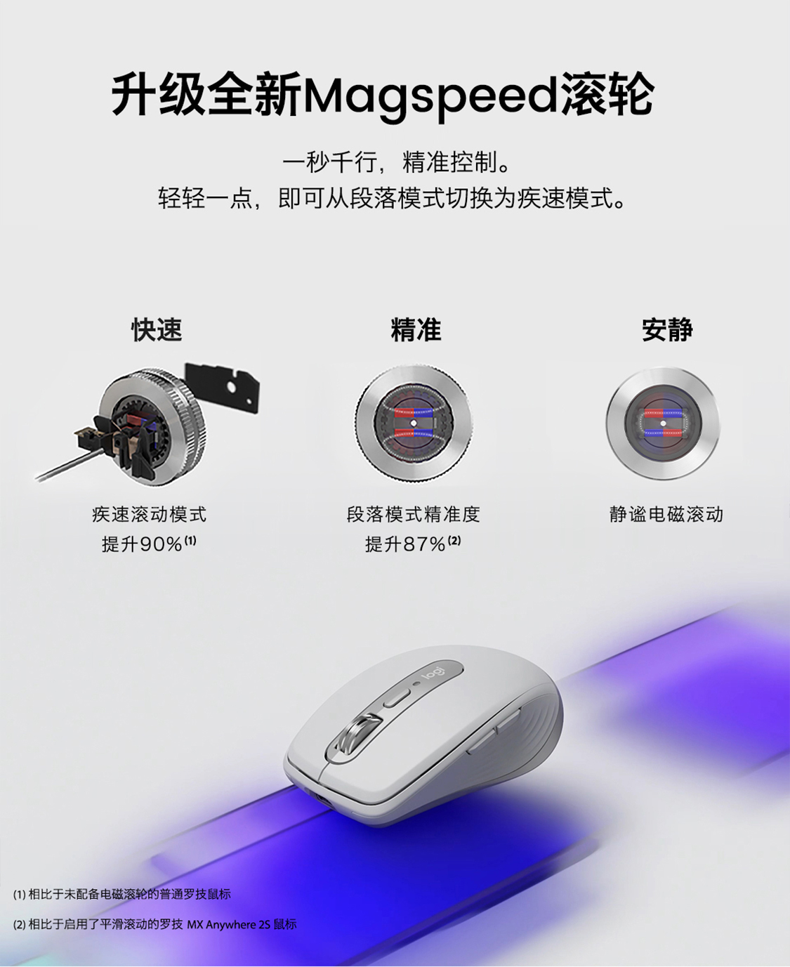 罗技(Logitech)MX Anywhere 3无线蓝牙双模鼠标 商务办公 便携鼠标 跨设备控制 【2.4G+蓝牙】标准版 银色