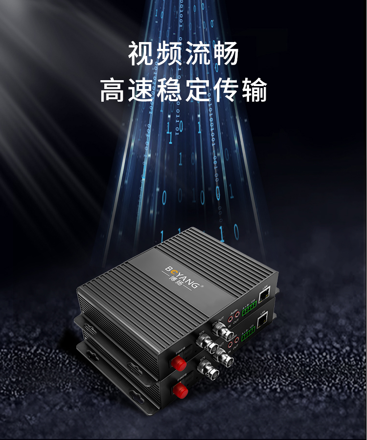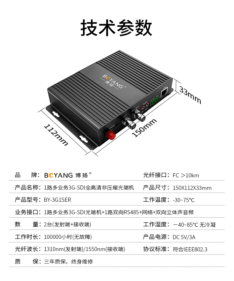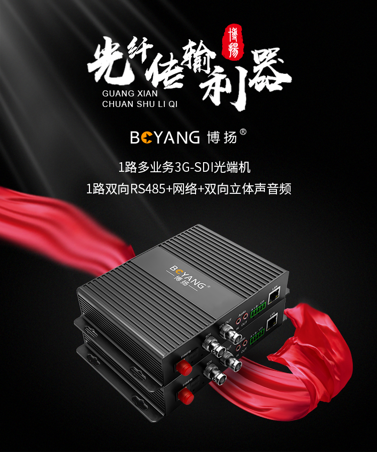 博扬 非压缩全高清3G-SDI视频光端机1路视频+网络+双向立体声音频+RS485双双向数据一对 黑色