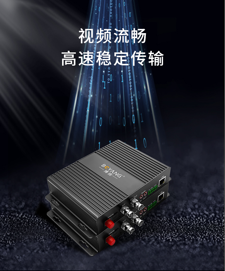 博扬 非压缩全高清3G-SDI视频光端机1路视频+网络+双向立体声音频+RS232双向数据一对 黑色