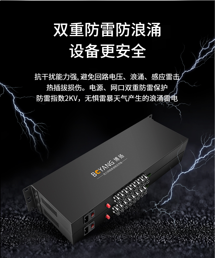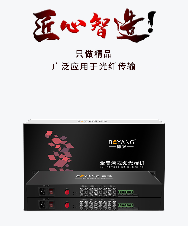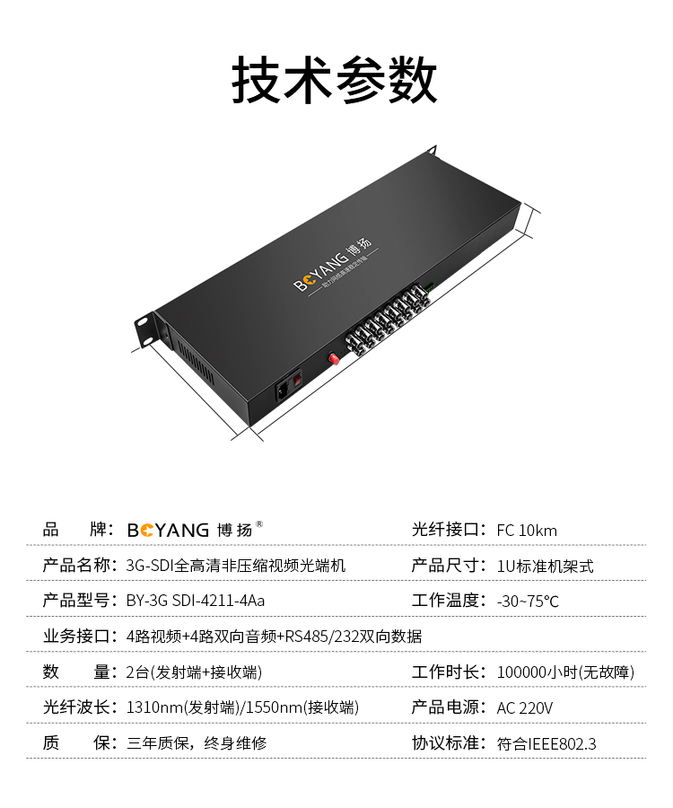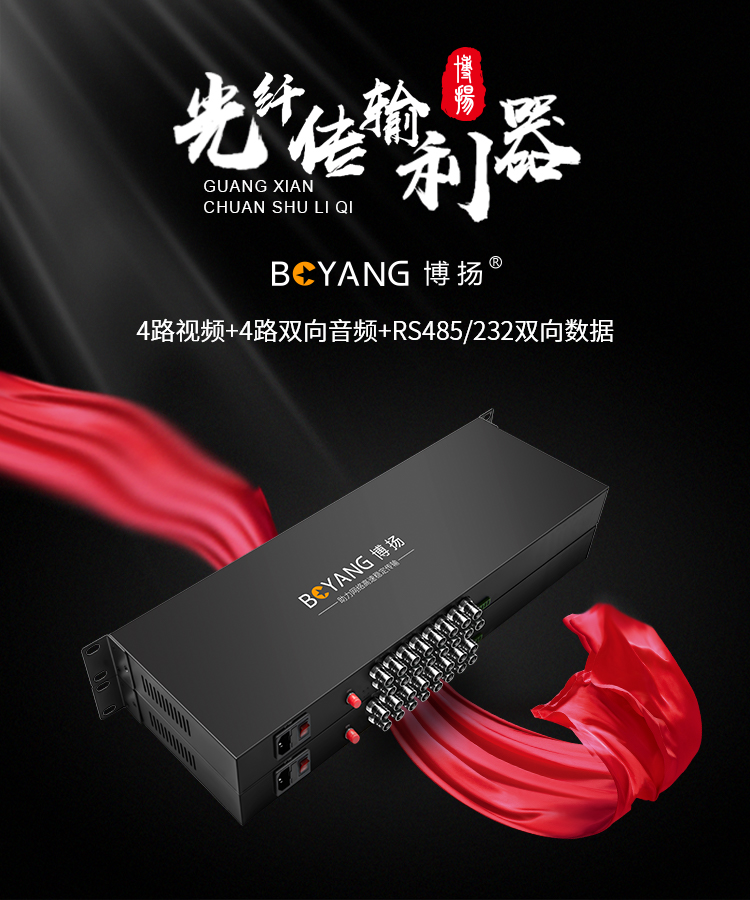 博扬 非压缩全高清3G-SDI视频光端机4路双向视频+RS485/232双向数据+4路双向音频 一对 黑色