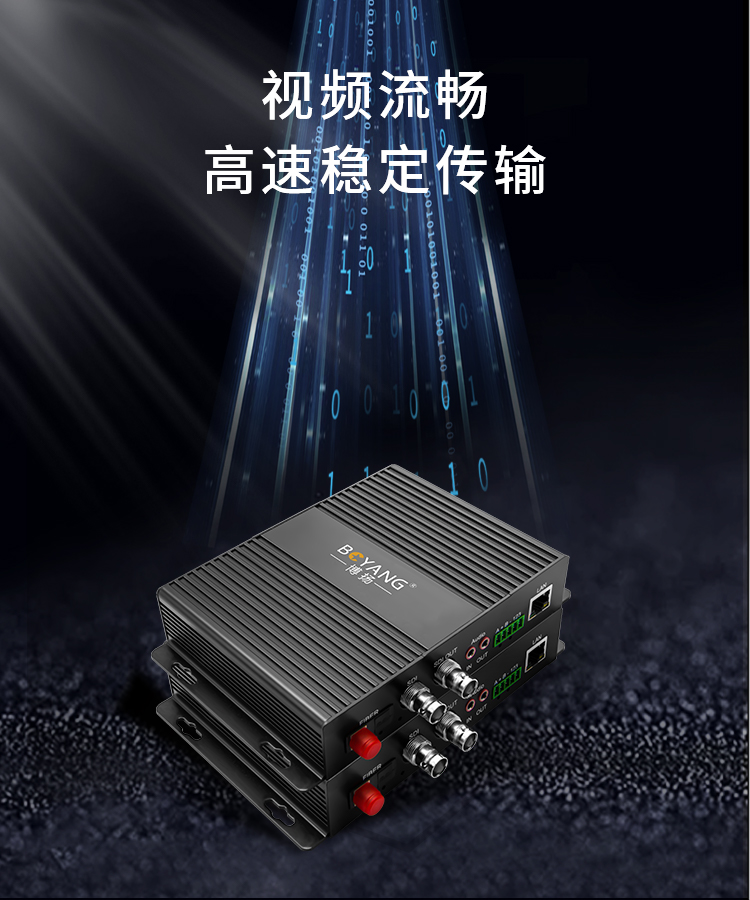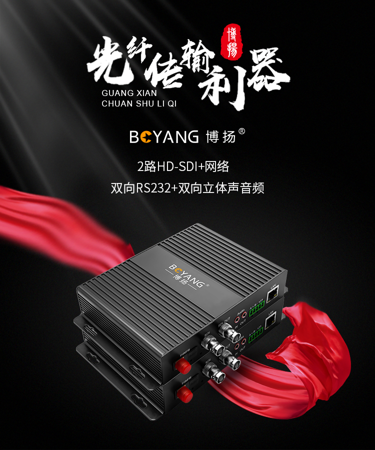 博扬 非压缩全高清HD-SDI视频光端机2路视频+网络+双向立体声音频+RS232双向数据一对 黑色
