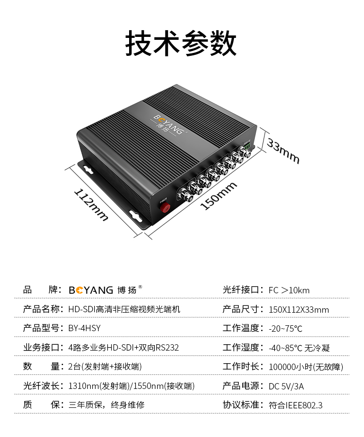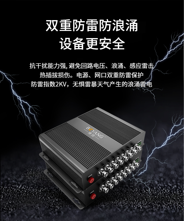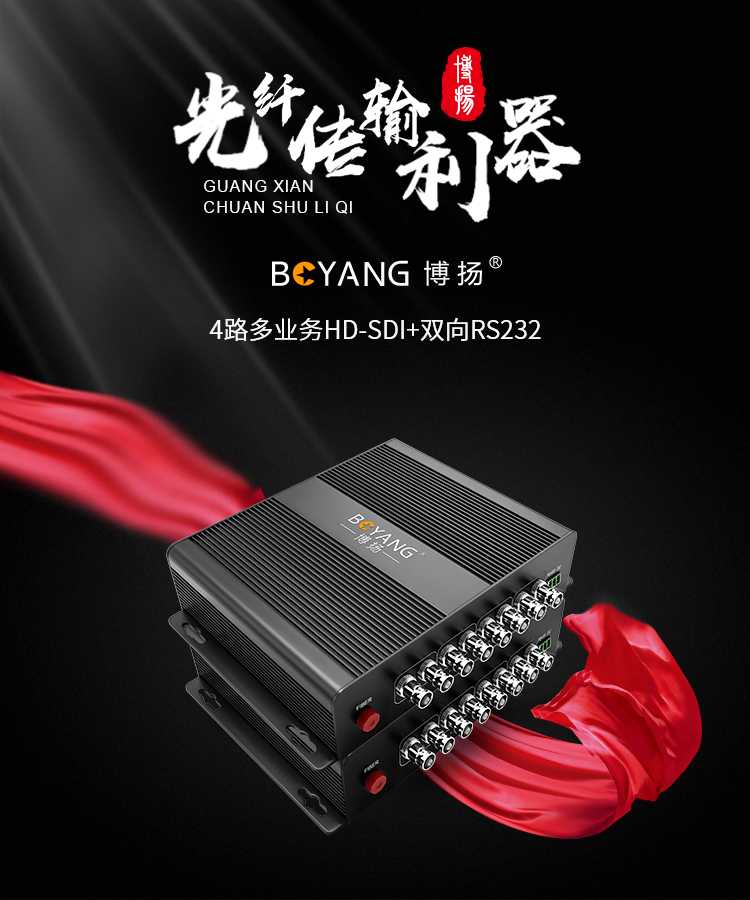 博扬 非压缩全高清HD-SDI视频光端机4路视频+RS232双向数据 光纤收发器转换器延长器一对 黑色