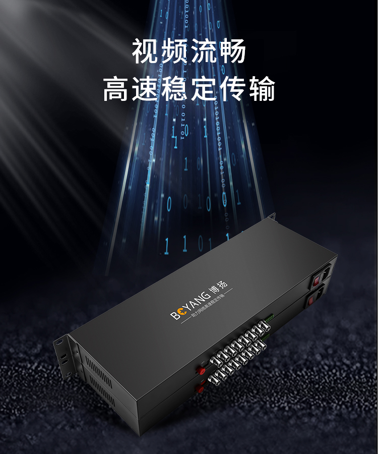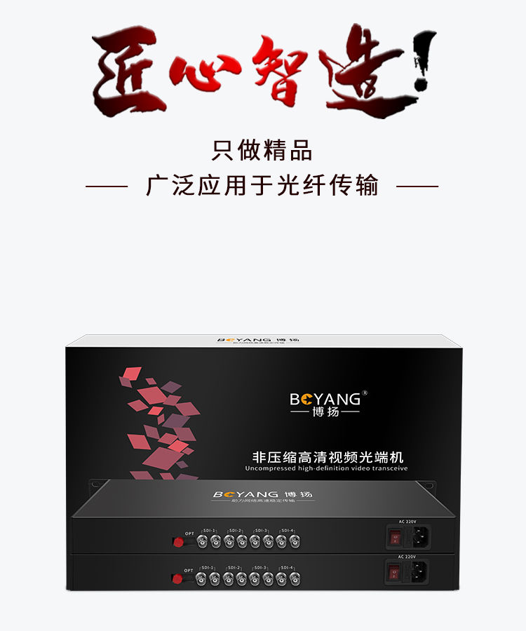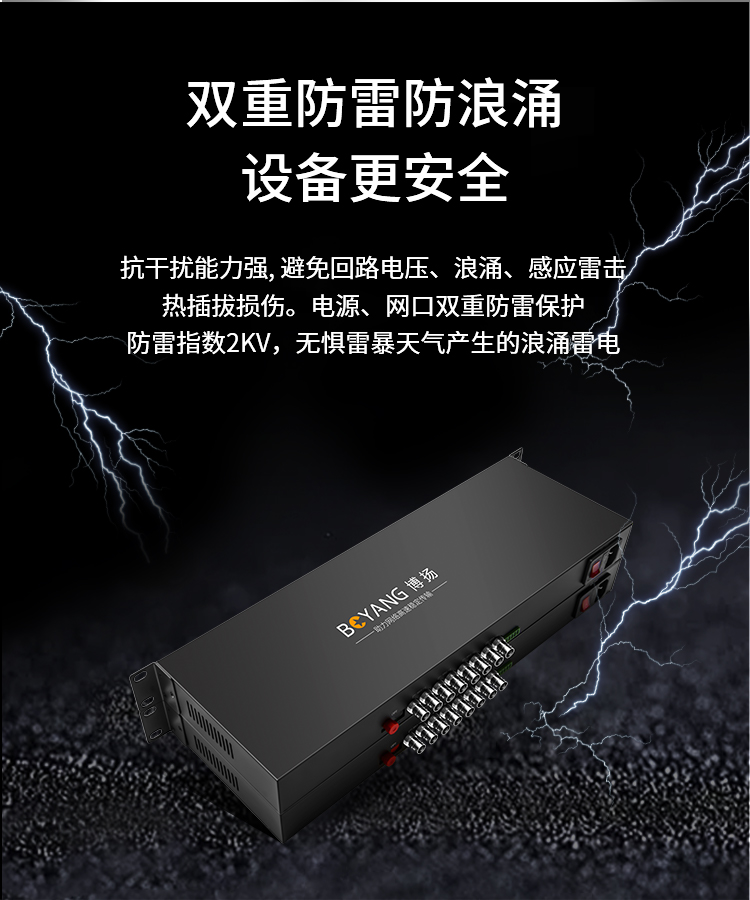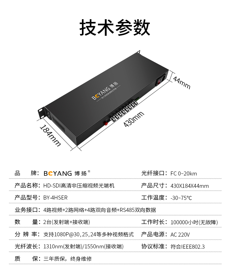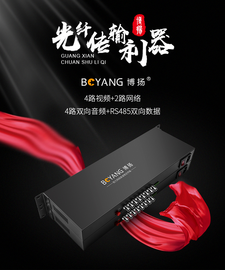 博扬 非压缩全高清HD-SDI视频光端机4路视频+2路网络+4路双向音频+RS485向数据 黑色