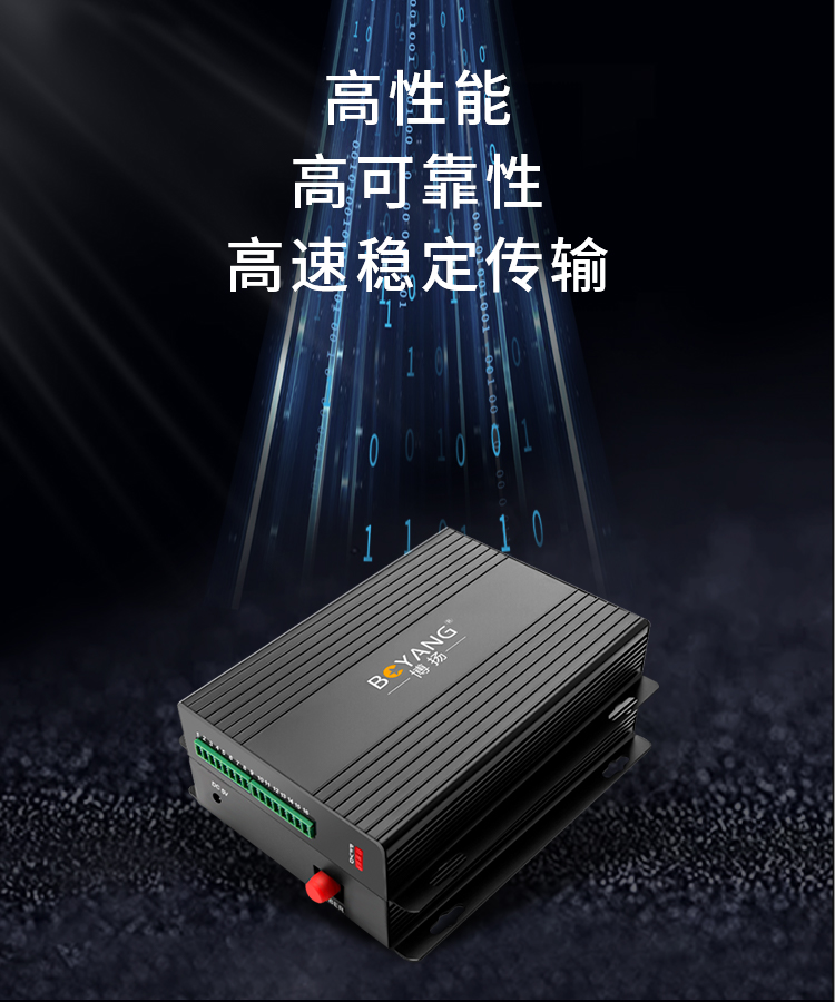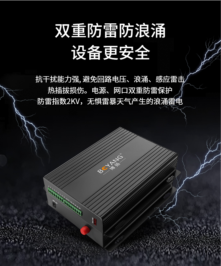 博扬 开关量光端机1路双向开关量 转光纤红外对射/周界报警/烟感报警/信号报警 一对 黑色