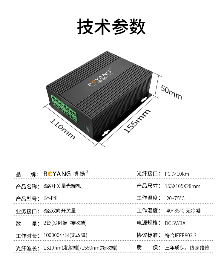 博扬(BOYANG)开关量光端机8路双向开关量 转光纤红外对射/周界报警/烟感报警/信号报警 一对 黑色