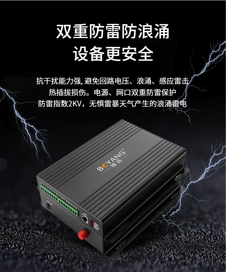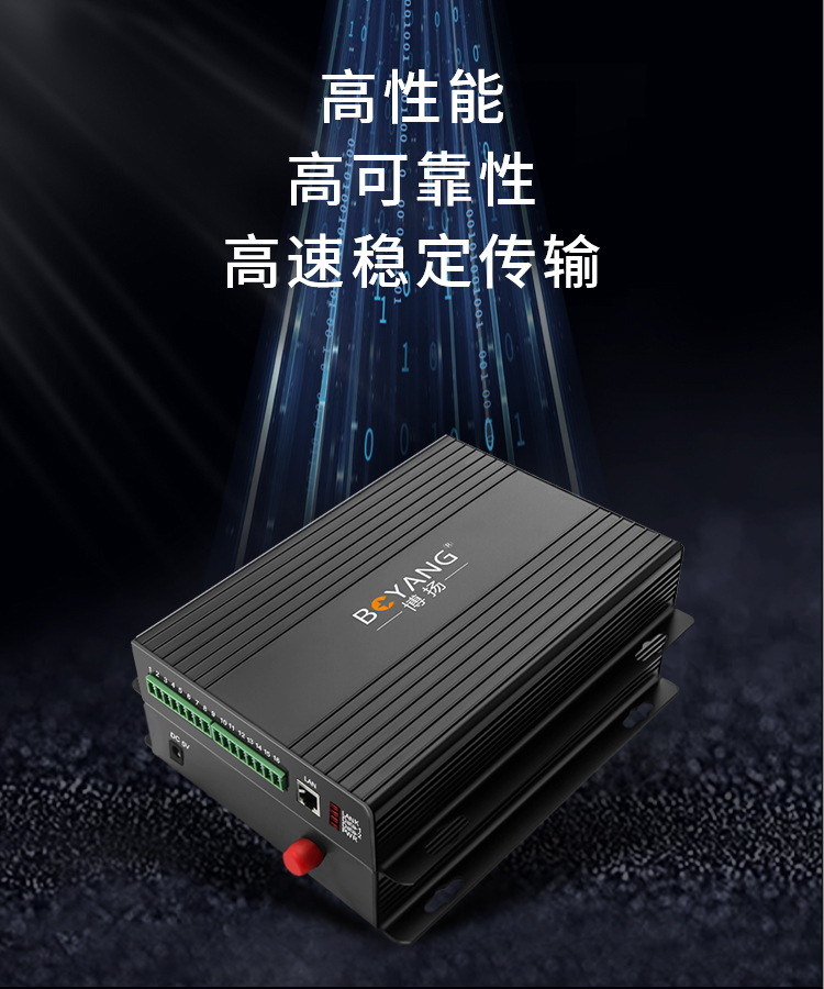博扬 开关量光端机1路双向开关量+1路网络 转光纤红外对射/周界报警/烟感报警/信号报警一对 黑色