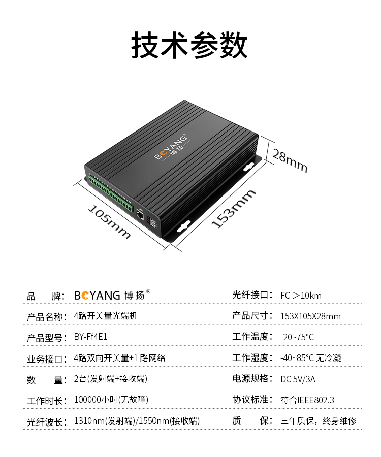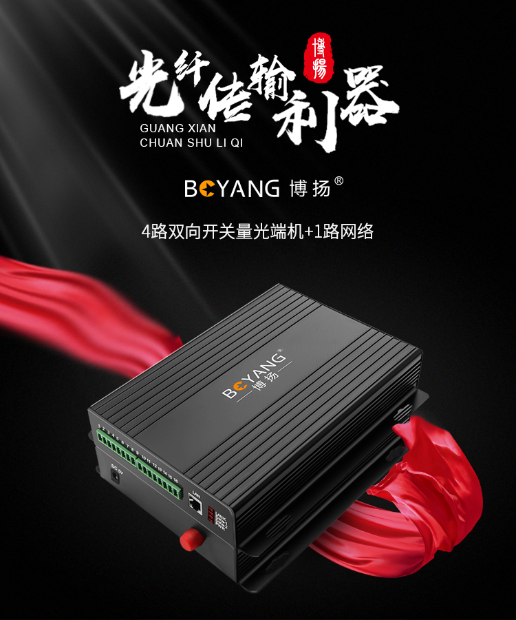 博扬 (BOYANG)开关量光端机4路双向开关量+1路网络 转光纤红外对射/周界报警/烟感报警/信号 黑色