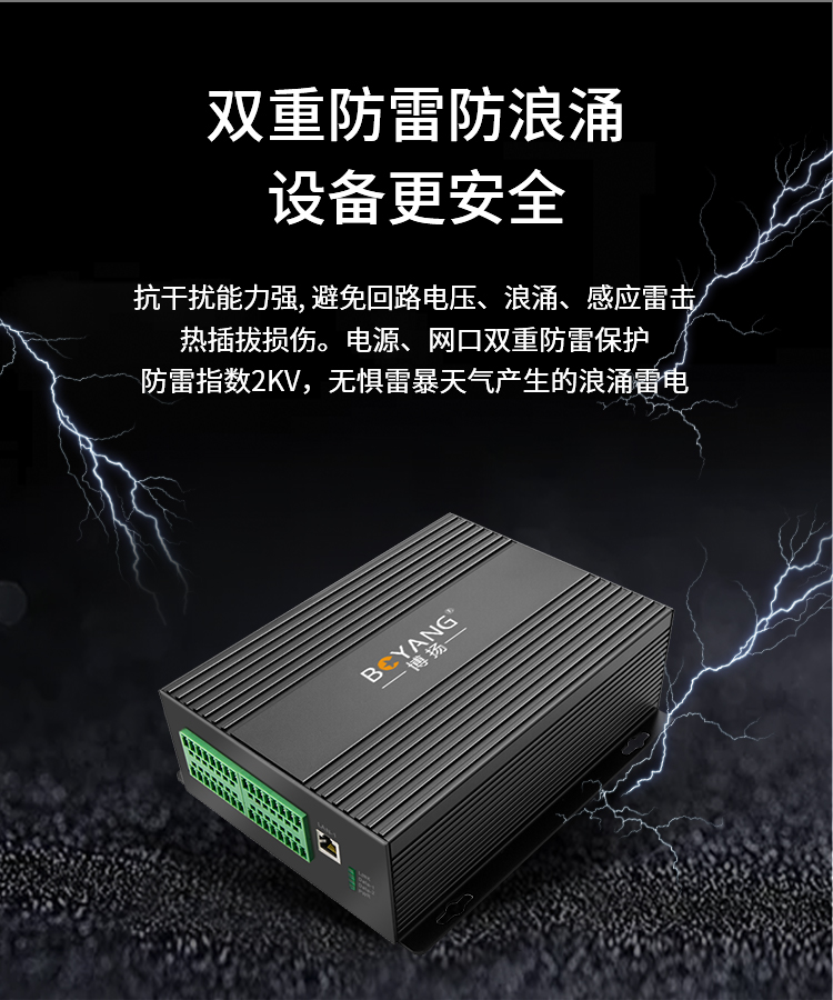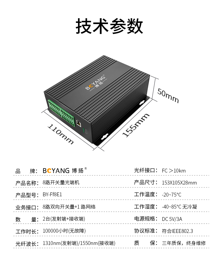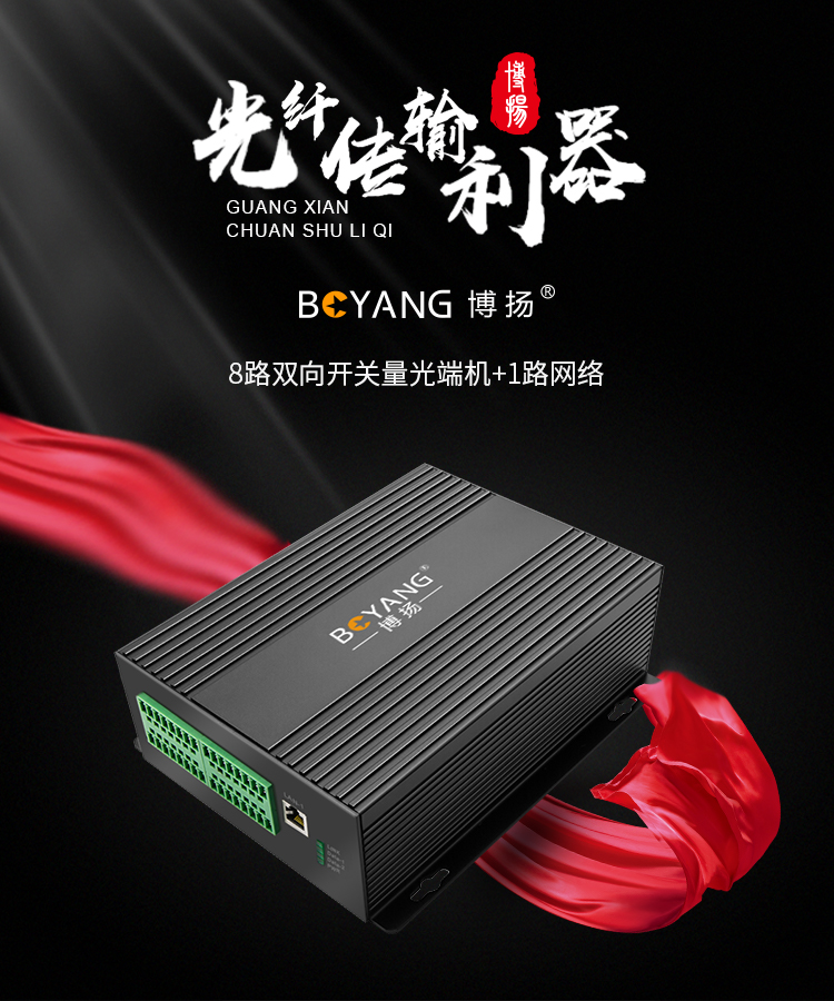 博扬 开关量光端机8路双向开关量+1路网络 转光纤红外对射/周界报警/烟感报警/信号报警一对 黑色