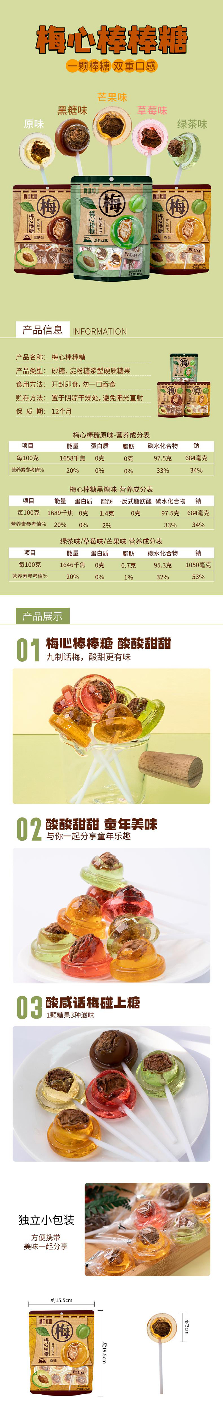糖田米田 混合口味梅心棒糖 100g*3袋 松石绿