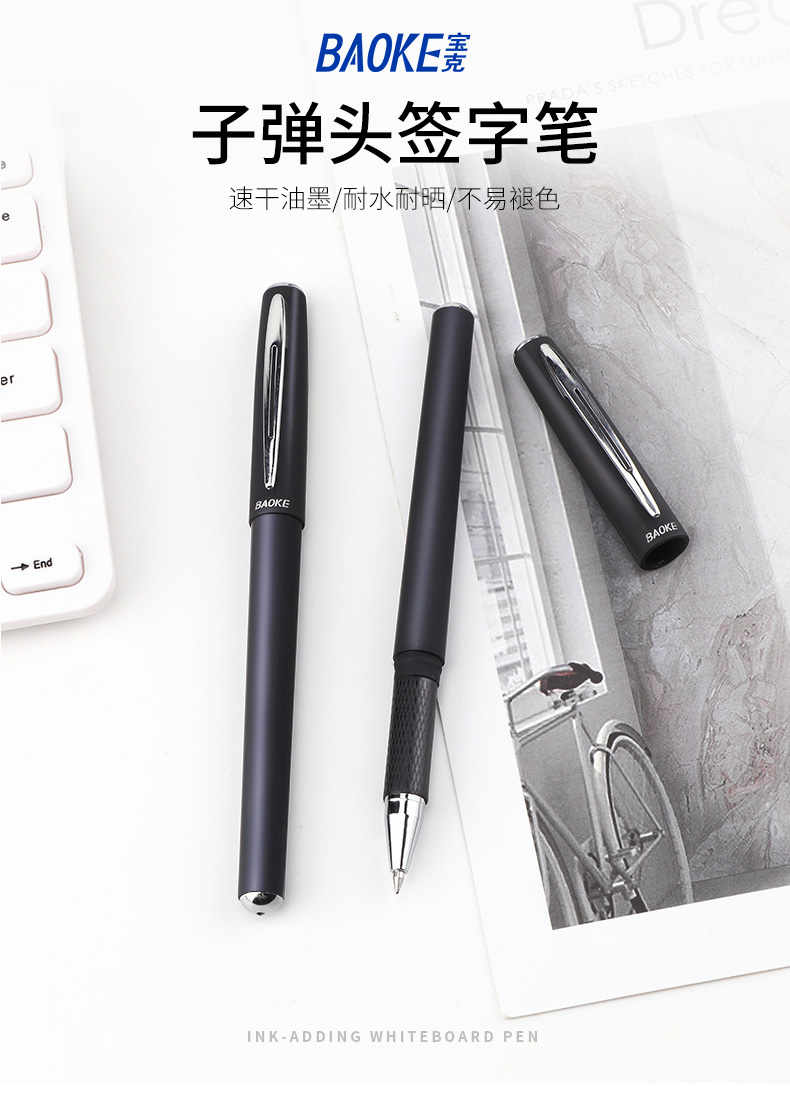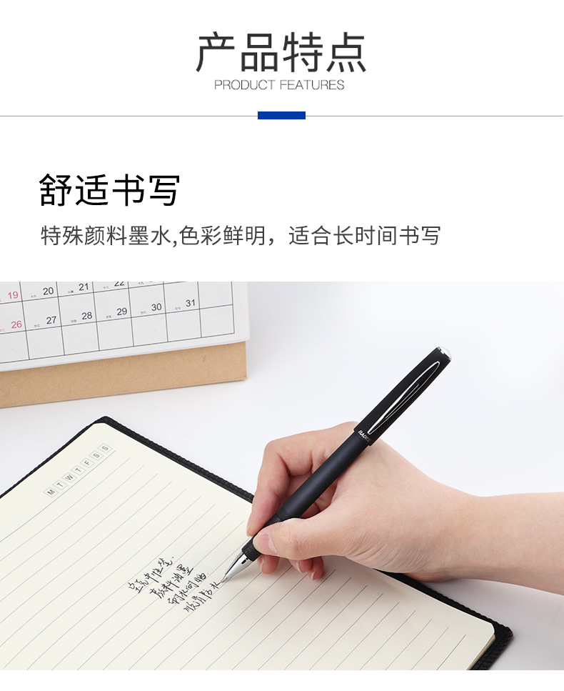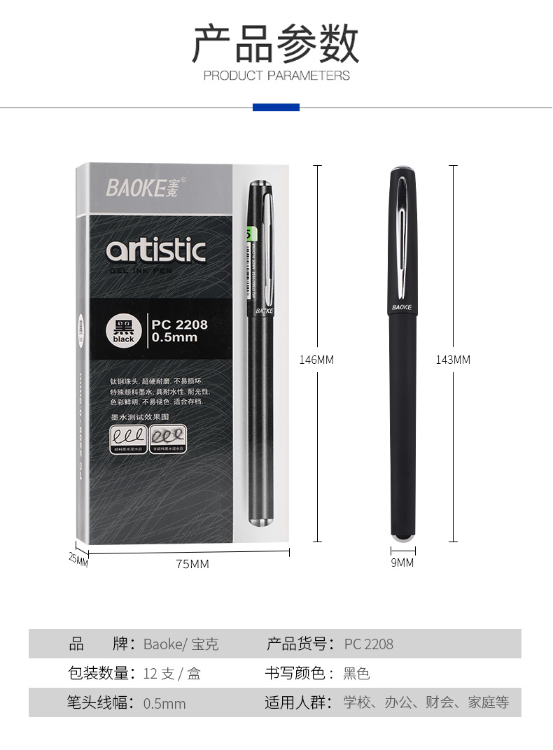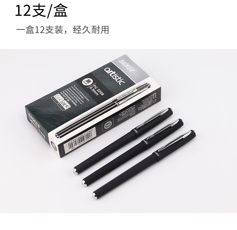 宝克(BAOKE)PC2208 0.5mm中性笔签字笔水笔 磨砂笔杆 黑色 12支/盒 曜石黑