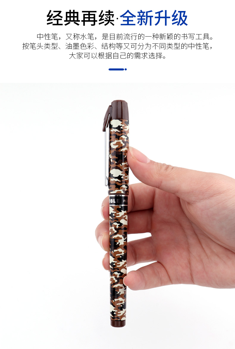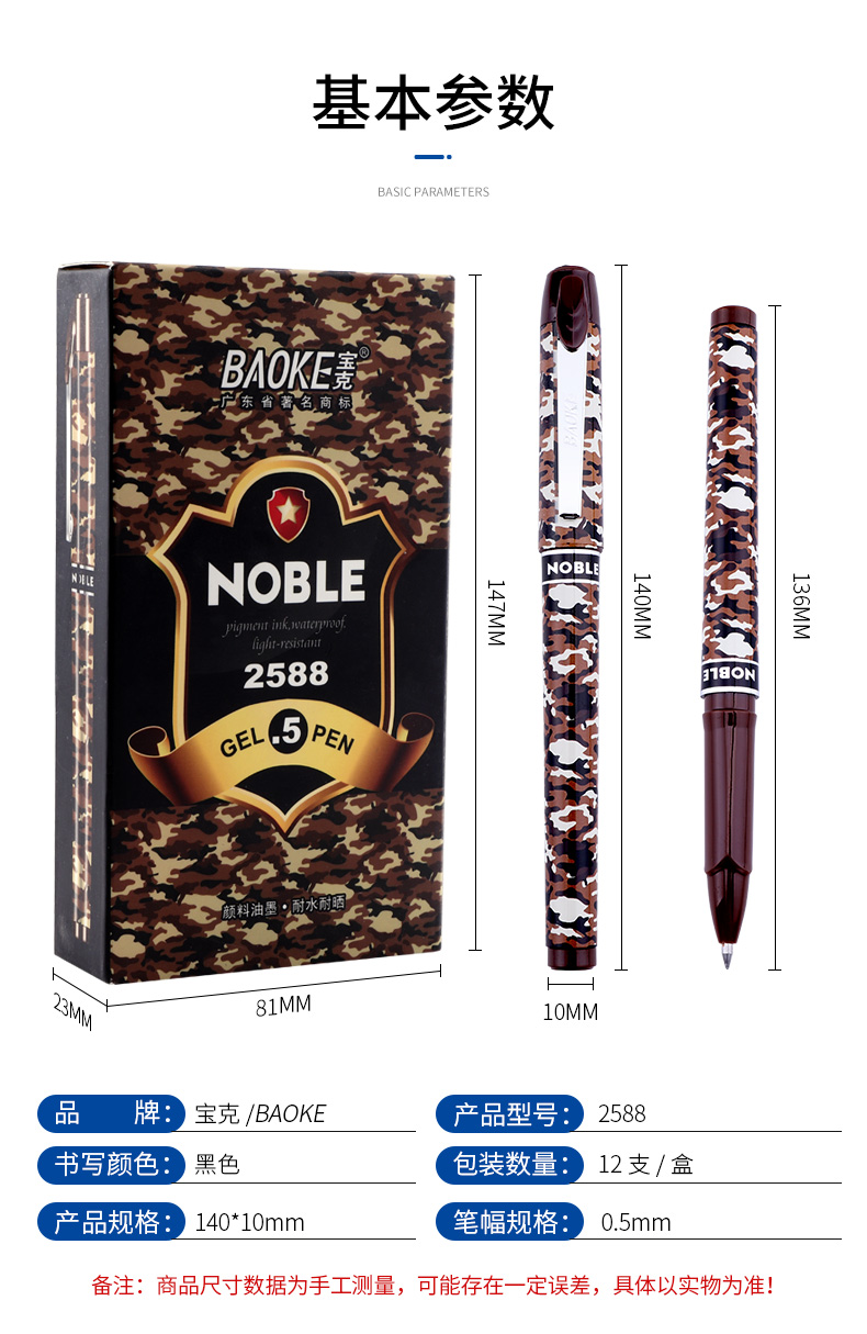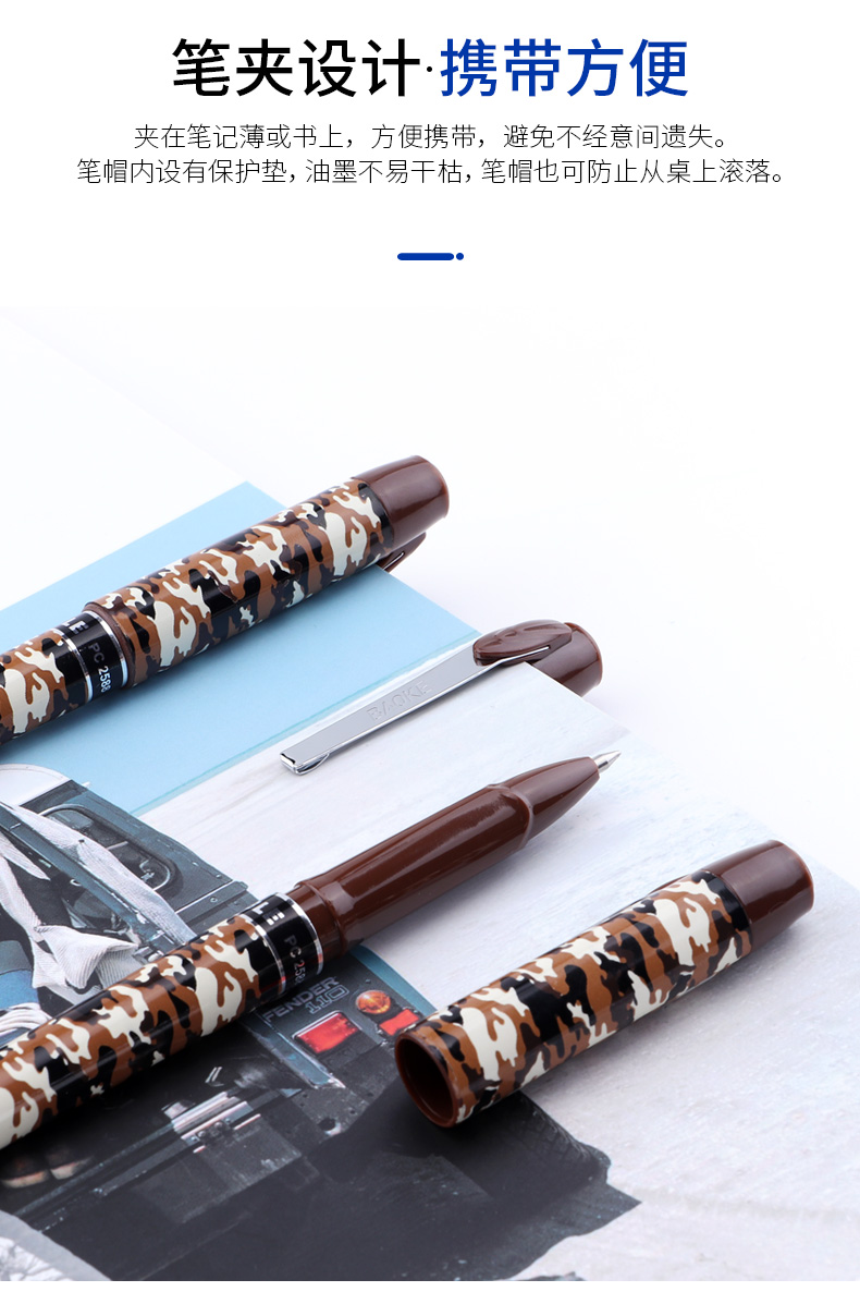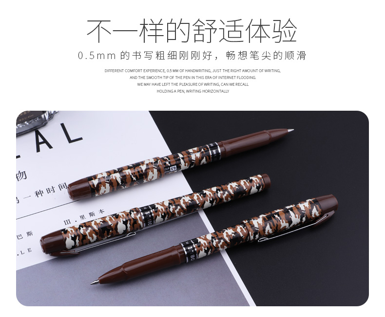 宝克(BAOKE)PC2588 0.5mm-黑色中性笔学生用笔水笔迷彩笔杆 12支/盒 曜石黑