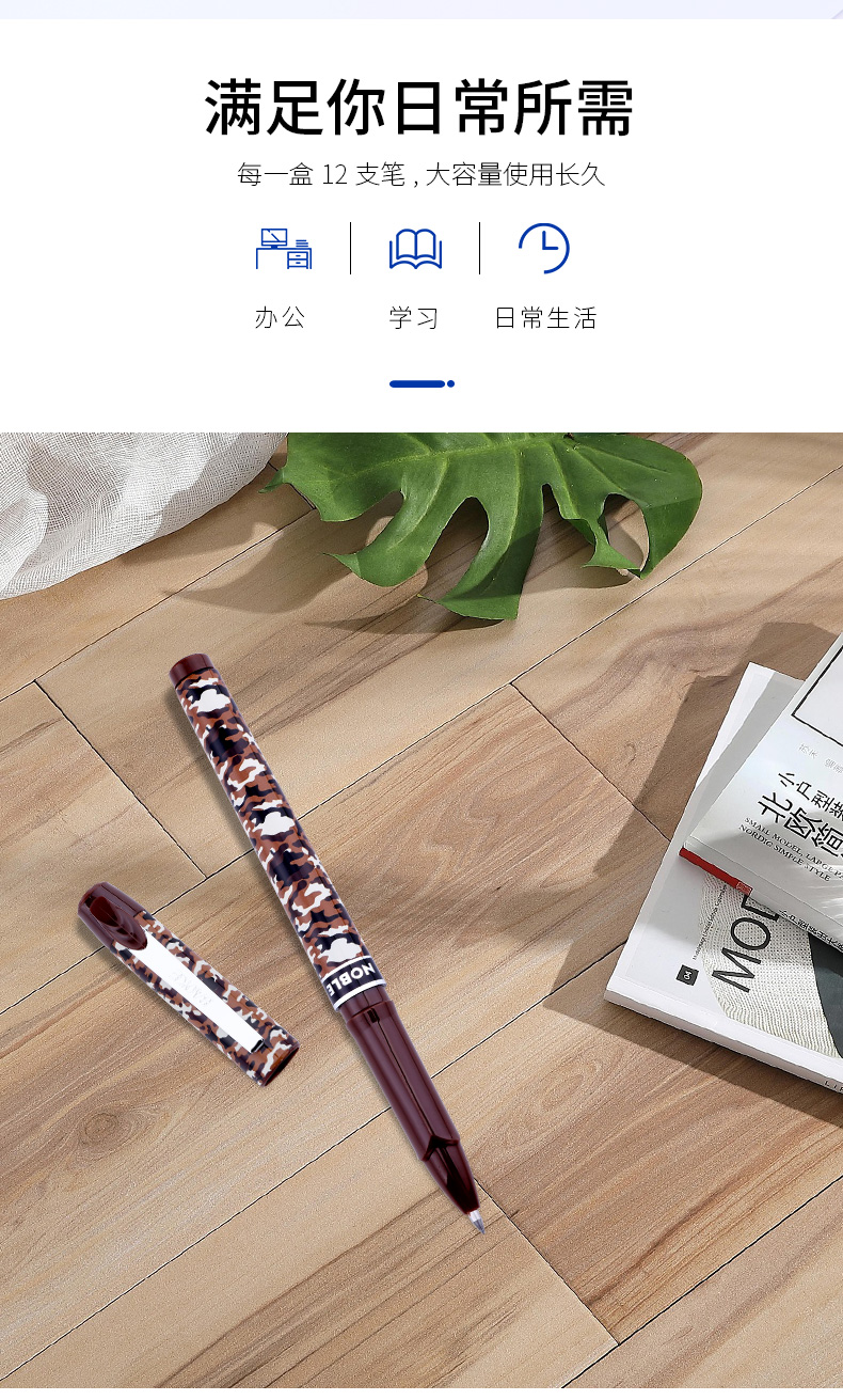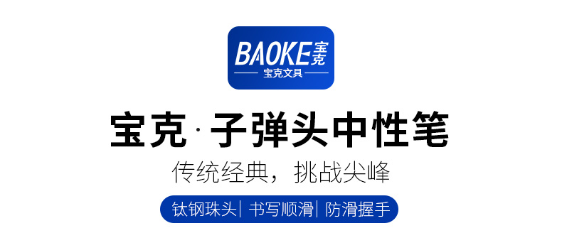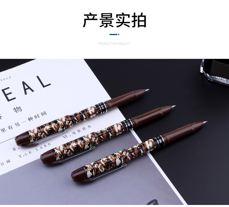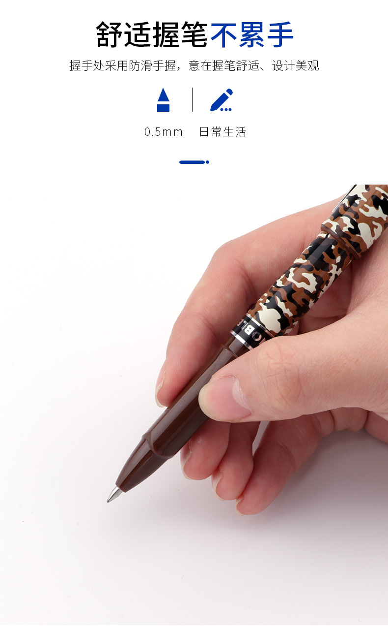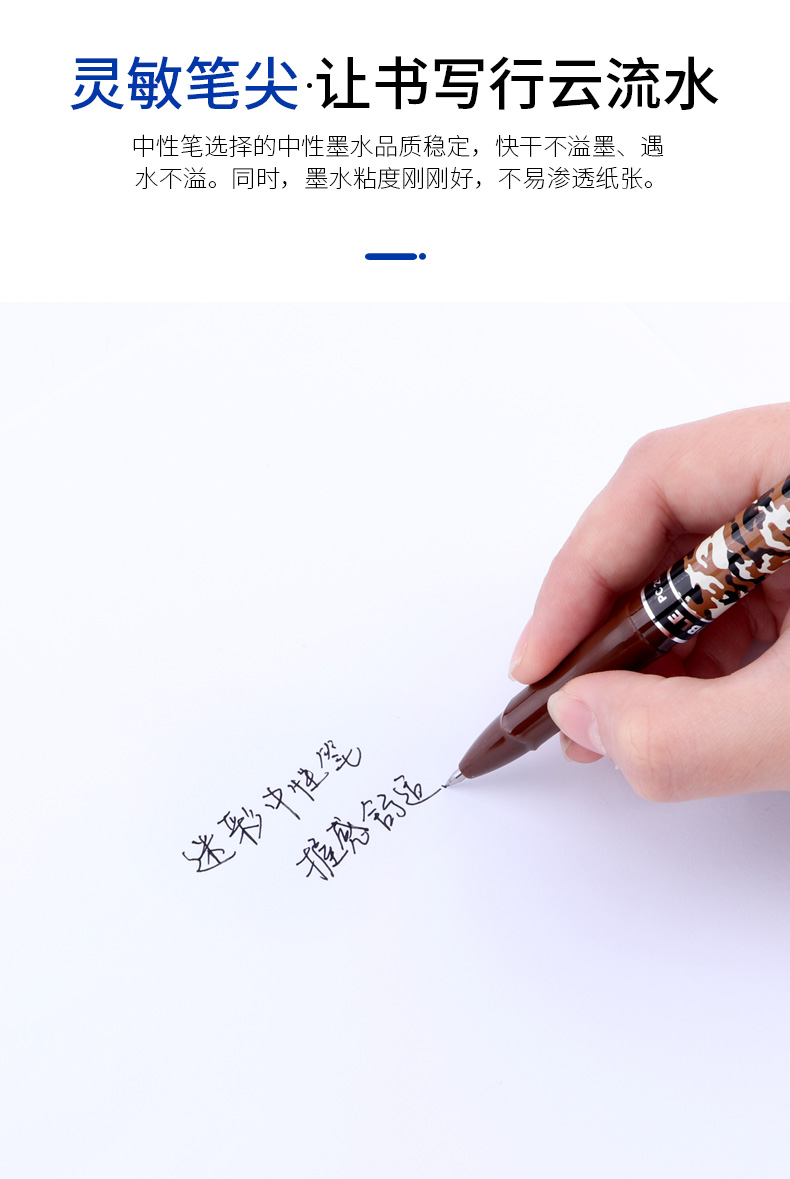 宝克(BAOKE)PC2588 0.5mm-黑色中性笔学生用笔水笔迷彩笔杆 12支/盒 曜石黑