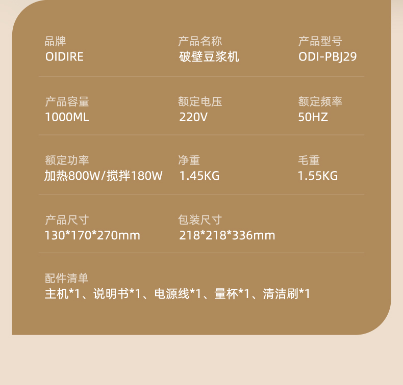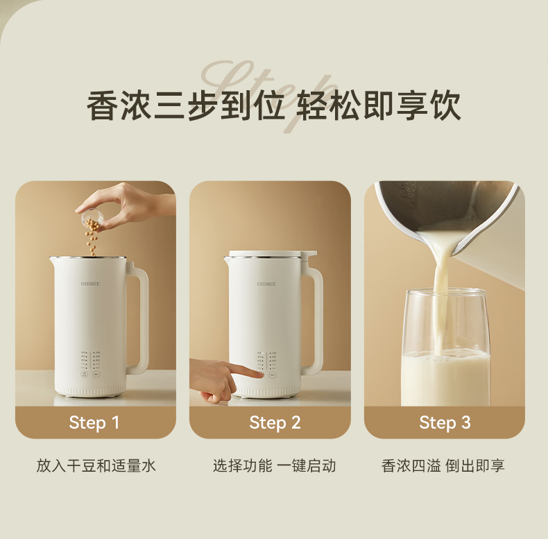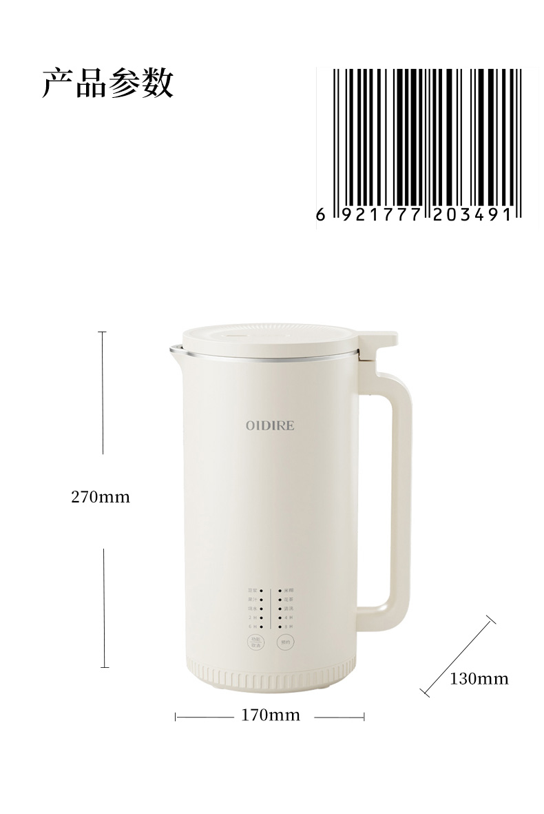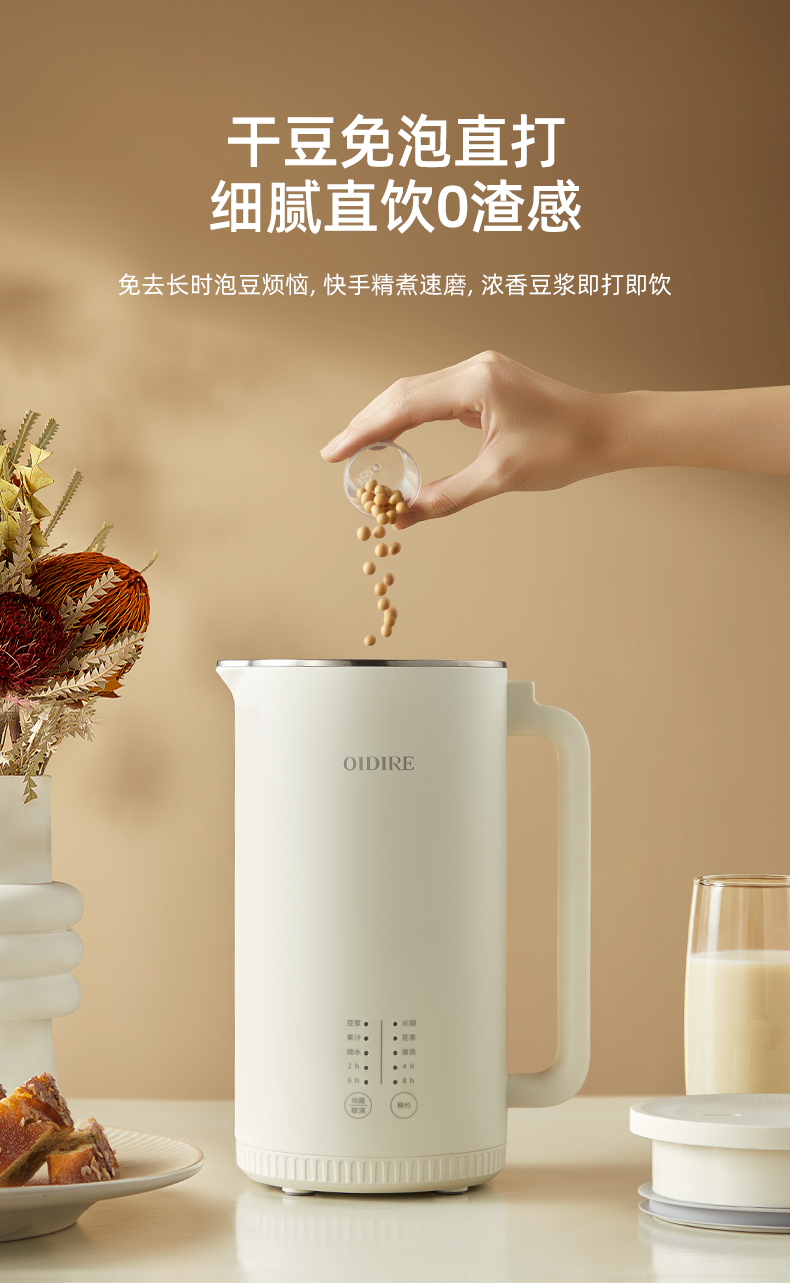 OIDIRE豆浆机ODI-PBJ29家用免过滤免煮单人全自动迷你款1-2人(单位:台) 白色