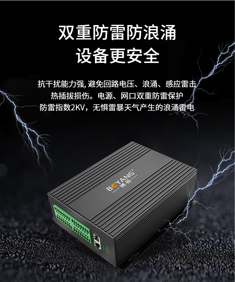 博扬 开关量光端机4路双向开关量+2路网络 转光纤红外对射/周界报警/烟感报警/信号报警 黑色