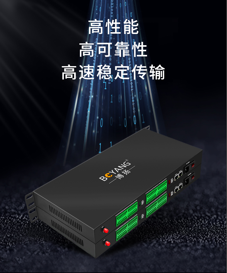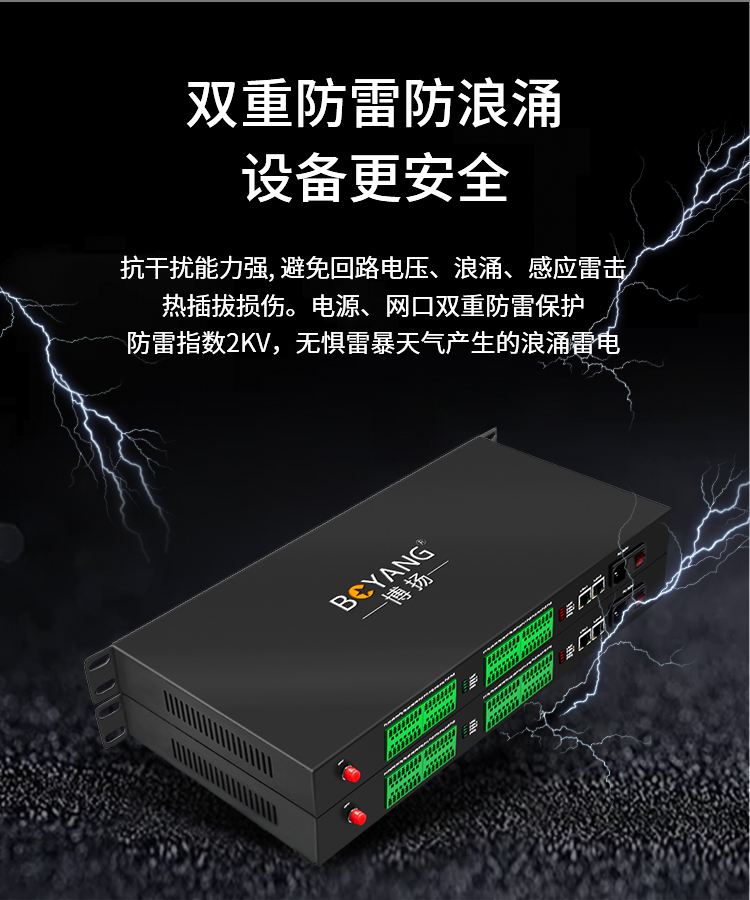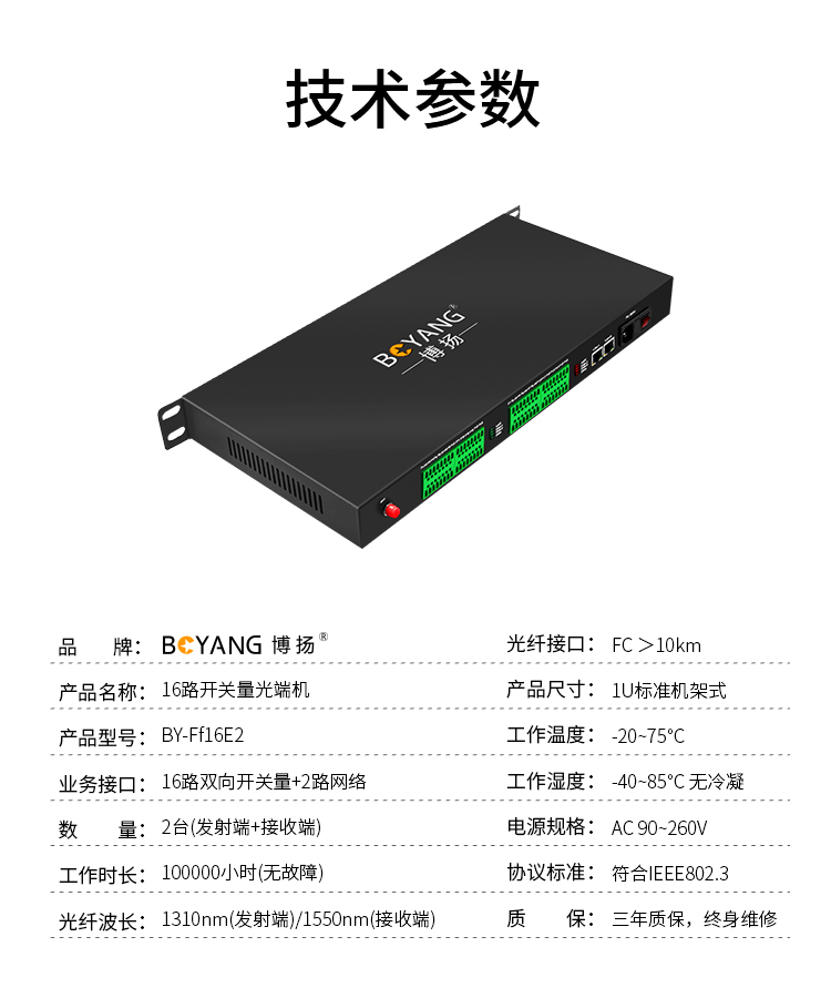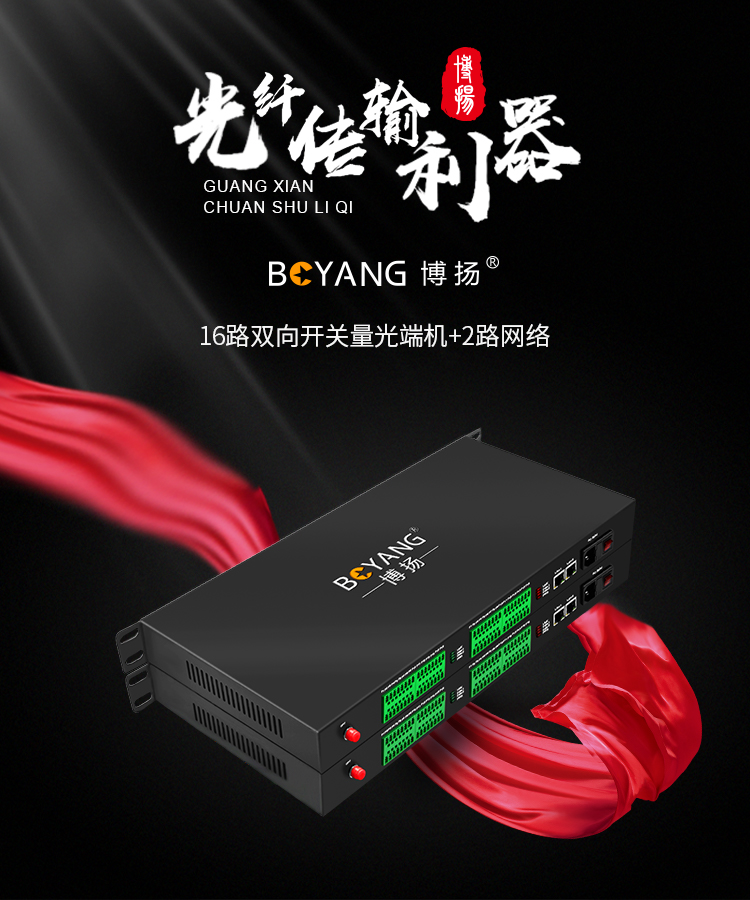博扬 开关量光端机16路双向开关量+2路网络转光纤红外对射/周界报警/烟感报警/信号报警一对 黑色
