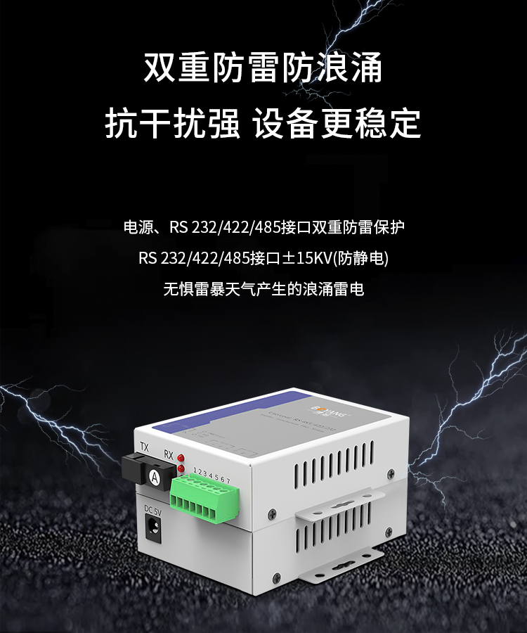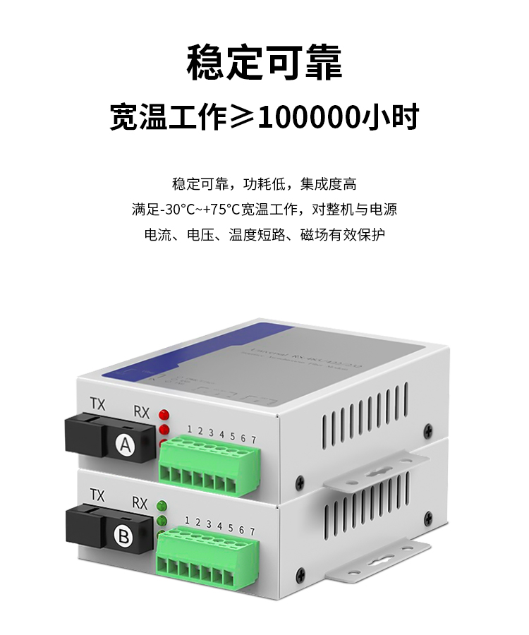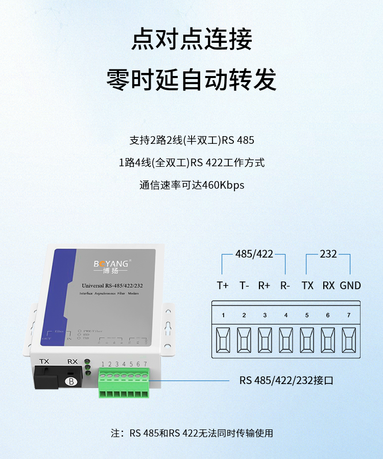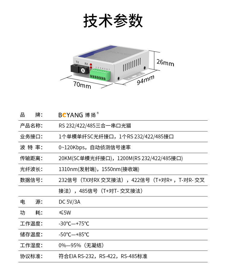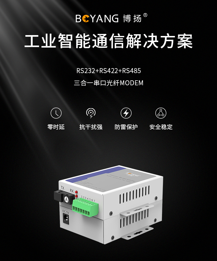 博扬 RS232+RS422+RS485串口光端机延长器 三合一控制光猫 SC口 一对价 白色