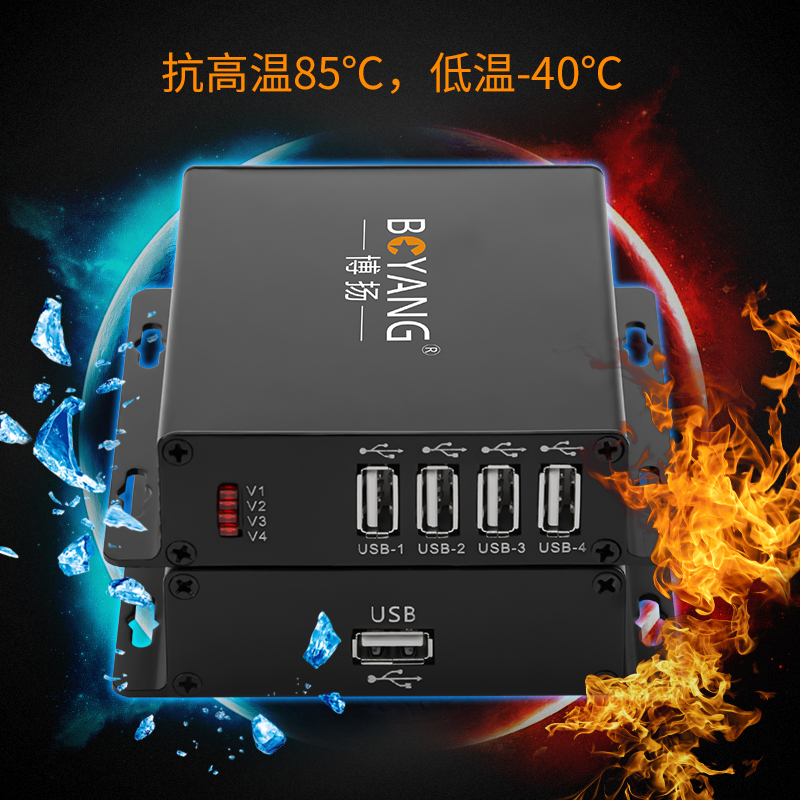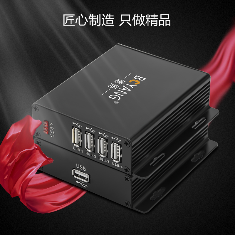 博扬 USB2.0光端机收发器 1分4路USB光纤延长器延伸器 支持触摸屏工业摄像头 单模FC口 黑色