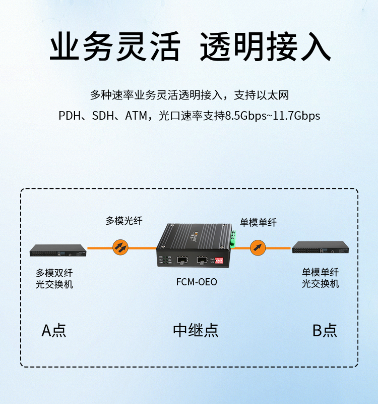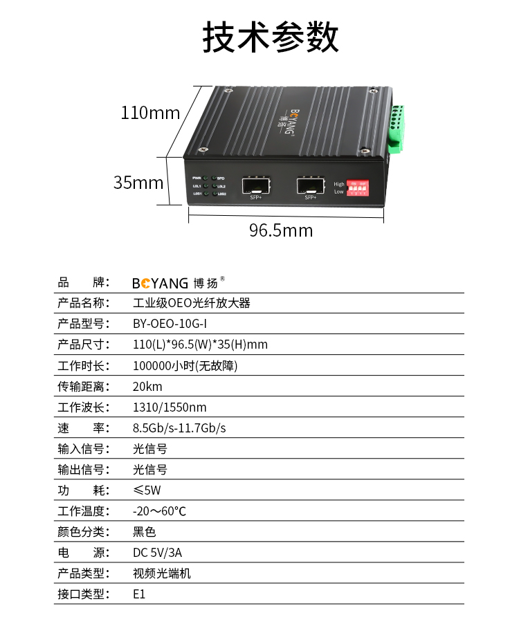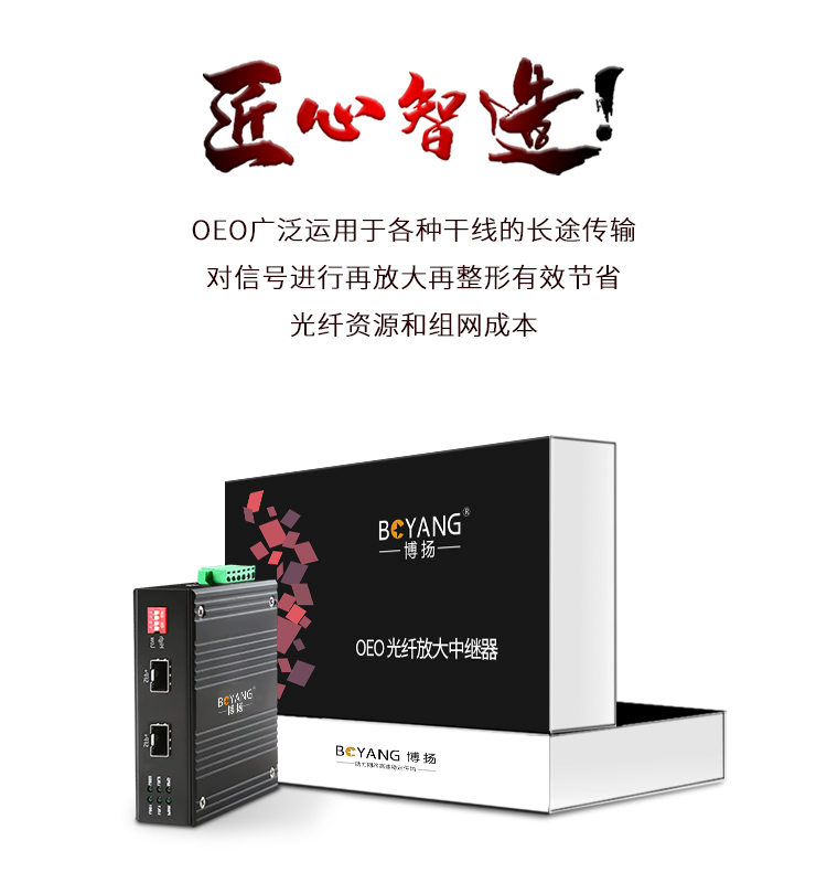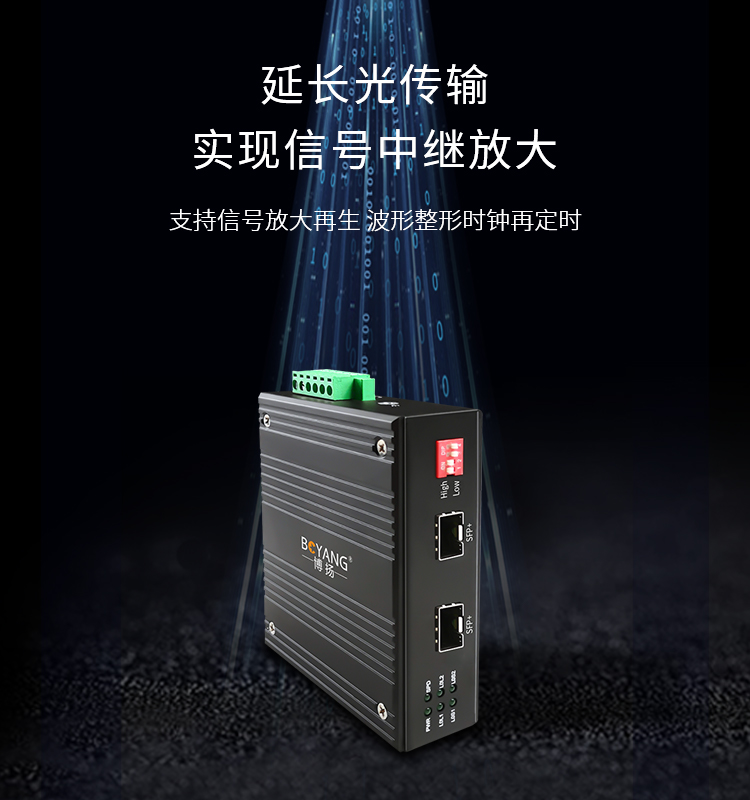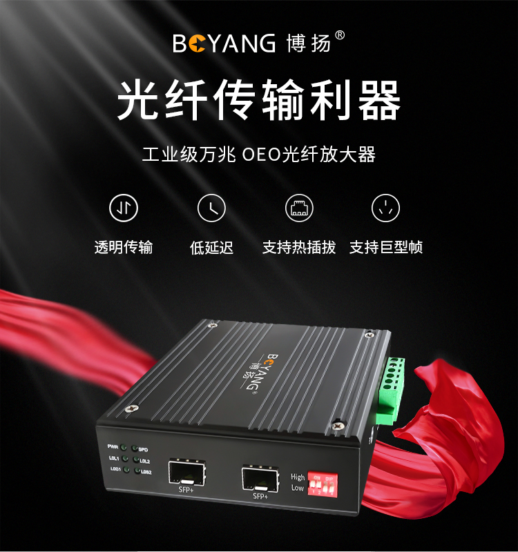 博扬 工业级OEO光纤放大器 1.25G-10G光纤中继器延长 单多模/波长转换器 SFP口 黑色