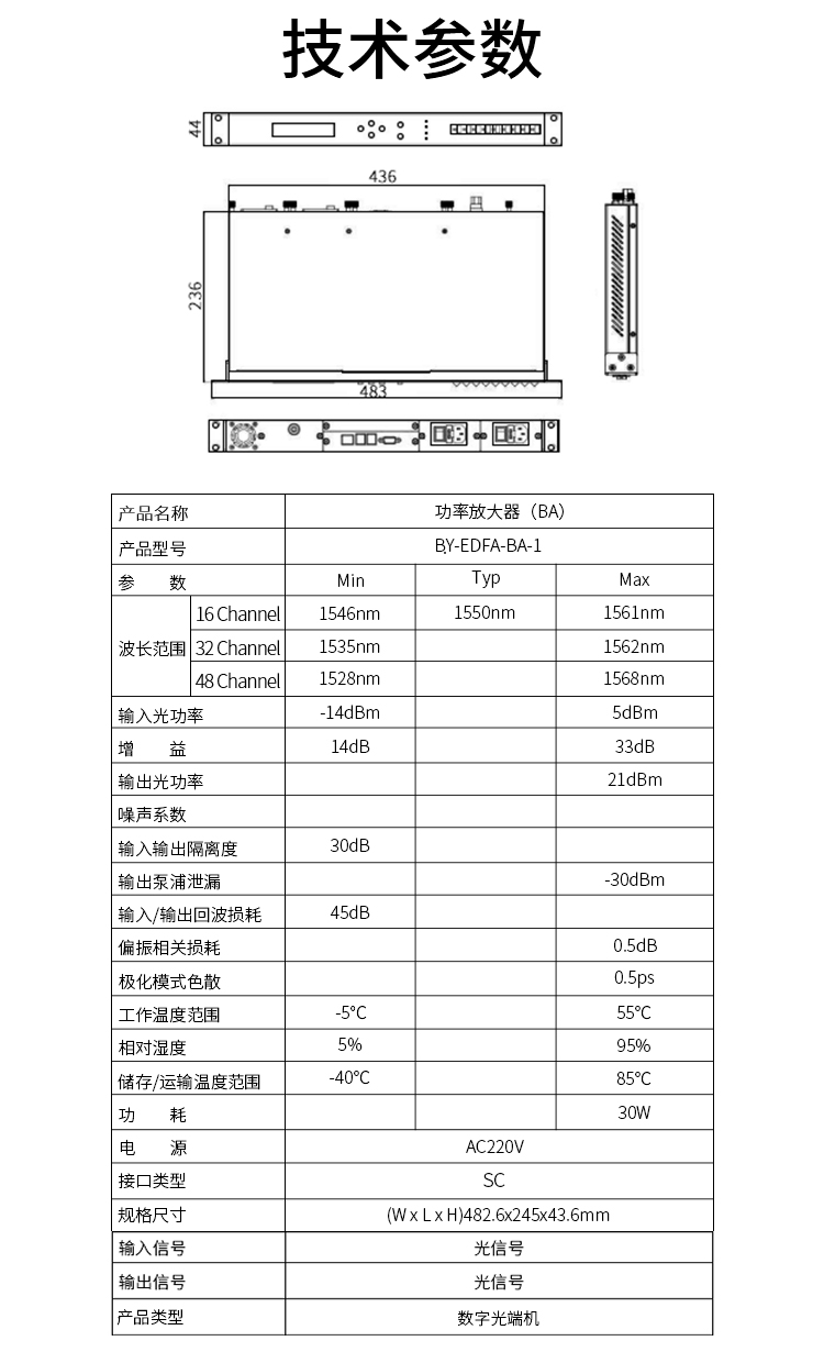 博扬 EDFA放大器 1550nm掺铒光纤放大器 C波段高平坦性BA功率放大器 白色