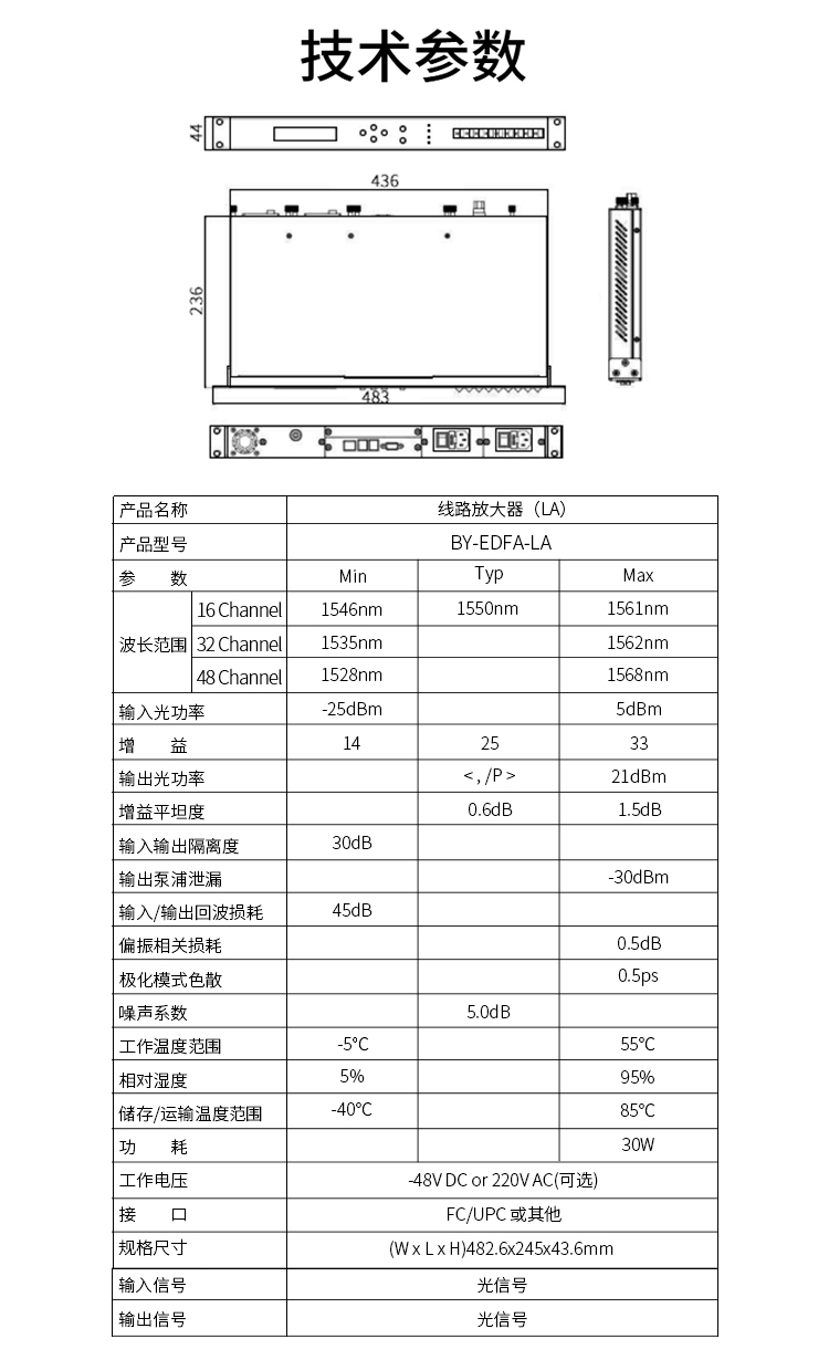 博扬 EDFA放大器 LA线路放大器 1550nm掺铒光纤放大器 C波段高平坦性 白色