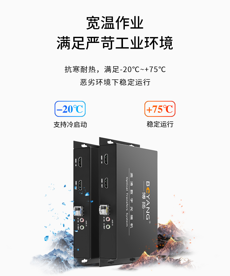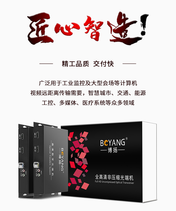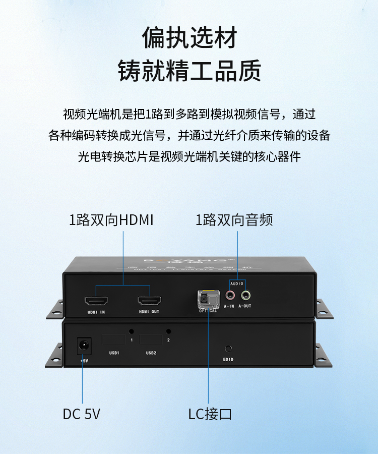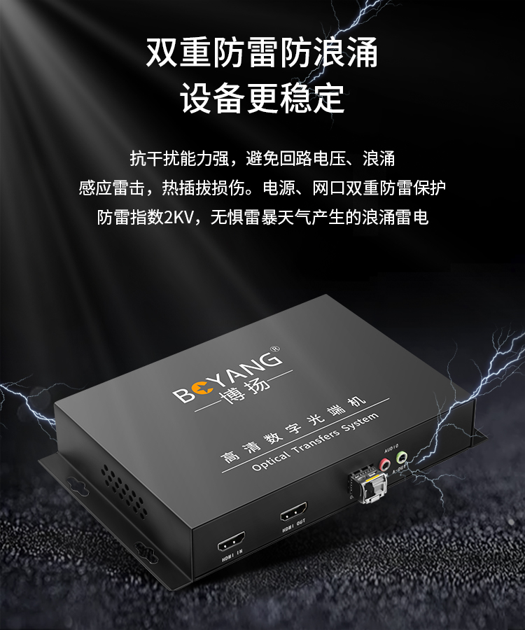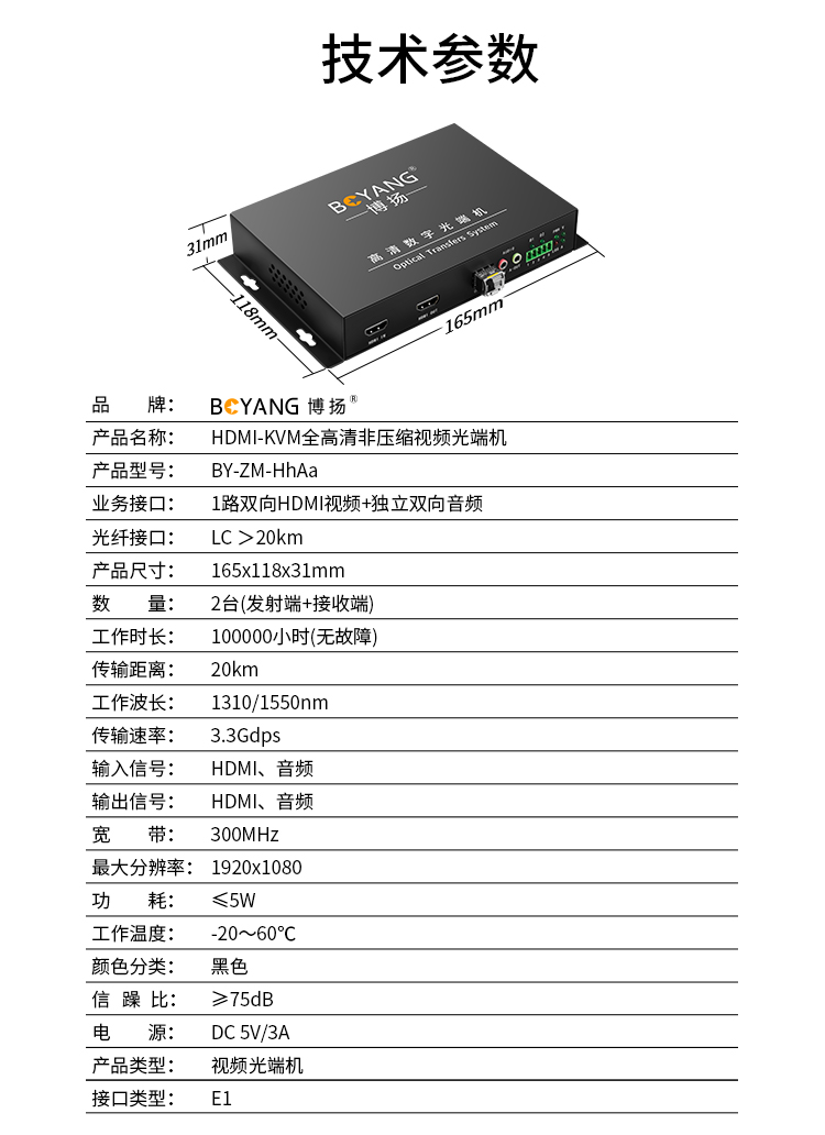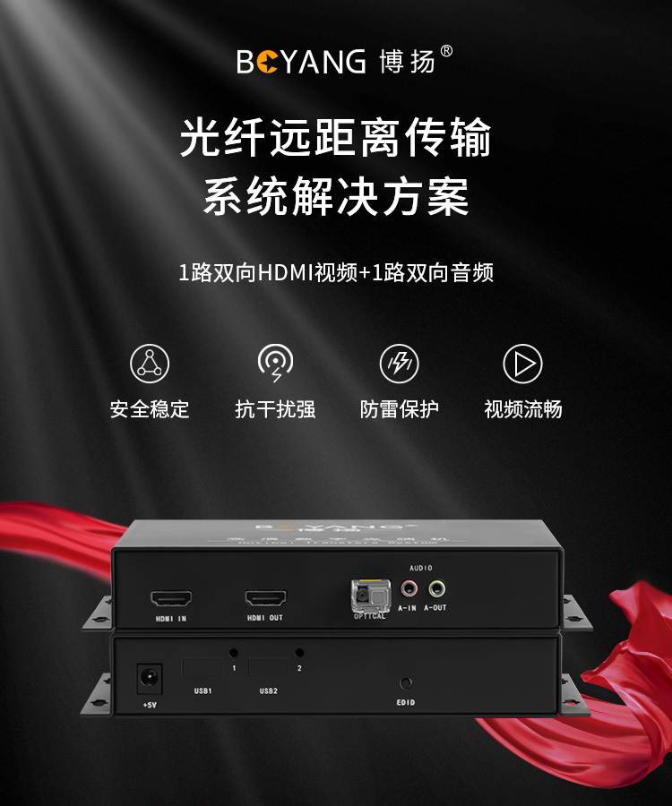 博扬 非压缩1路双向HDMI光端机 1路双向全高清视频+1路双向音频 LC20km 桌面式 黑色