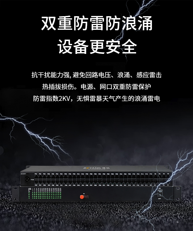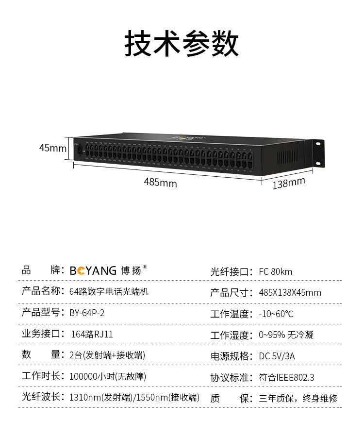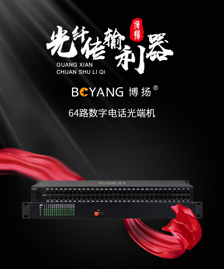 博扬(BOYANG)电话光端机 64路纯电话 RJ11接口 FC单纤机架式单电源 1对价 黑色