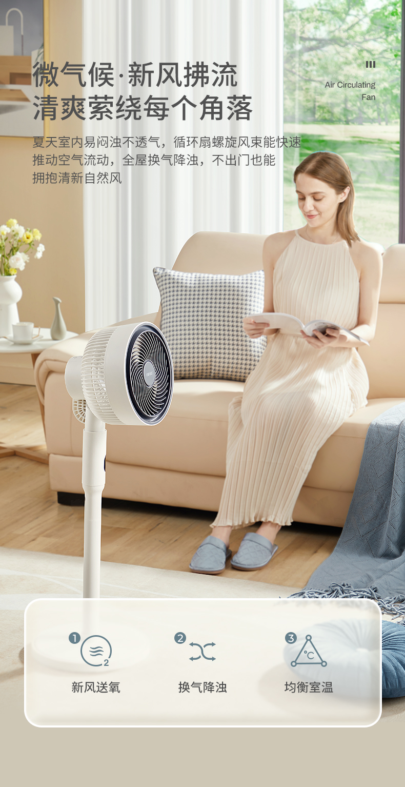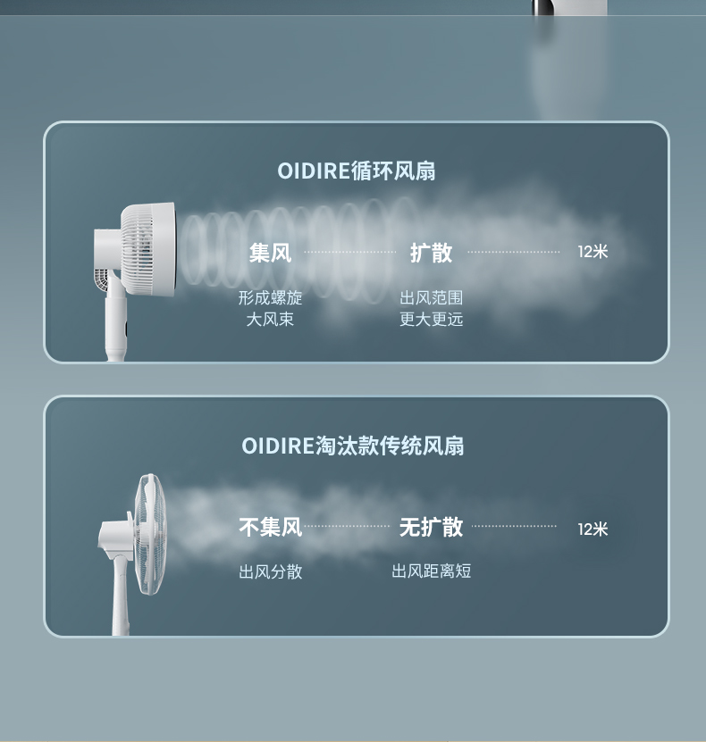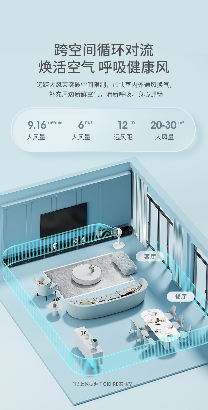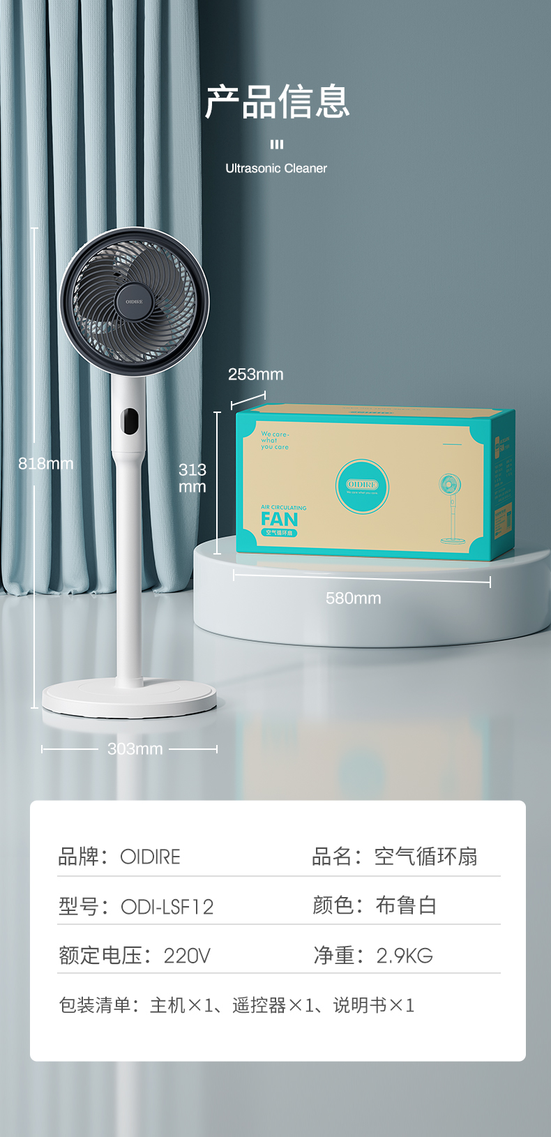 OIDIRE空气循环扇ODI-LSF12家用静音摇头冷风扇新款落地电风扇(单位:台) 布鲁白