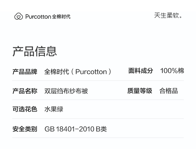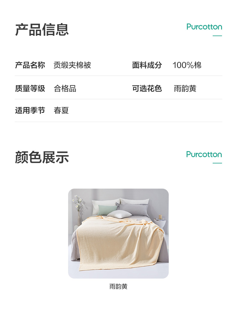 全棉时代夏双层纱布被 150cm×200cm雨韵黄 1件装 雨韵黄