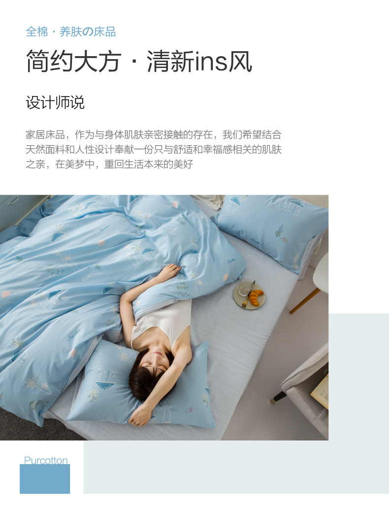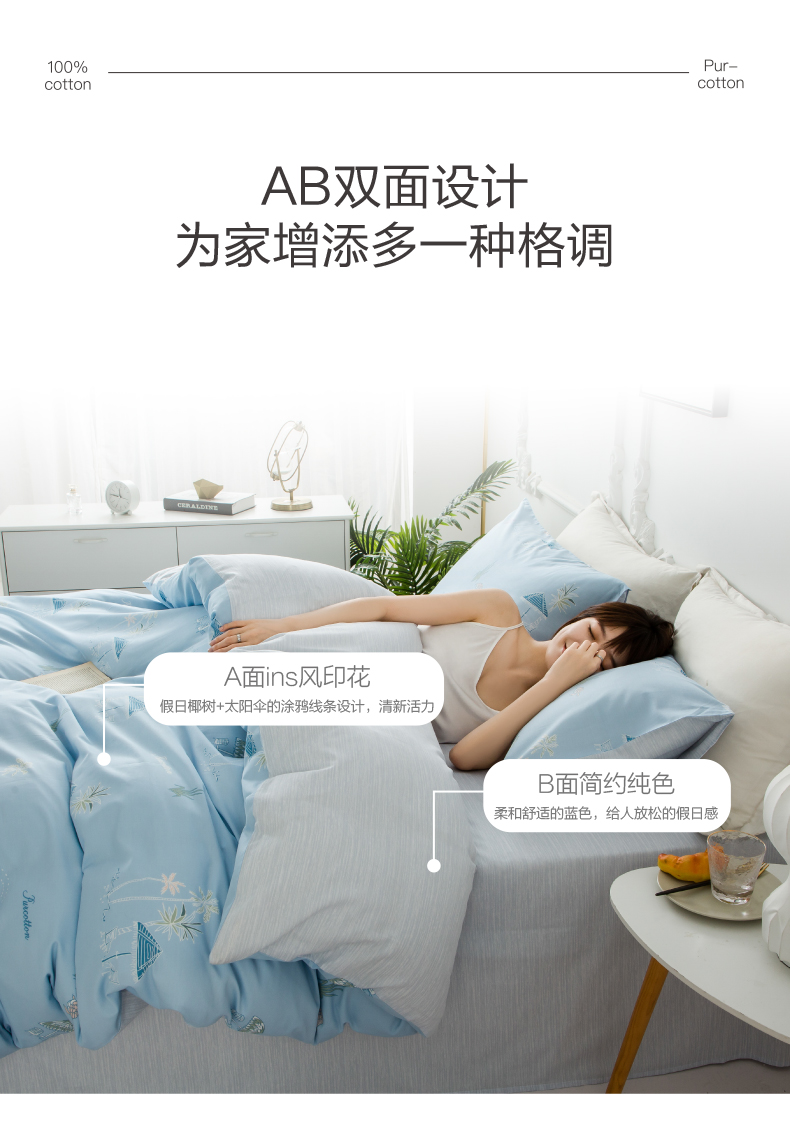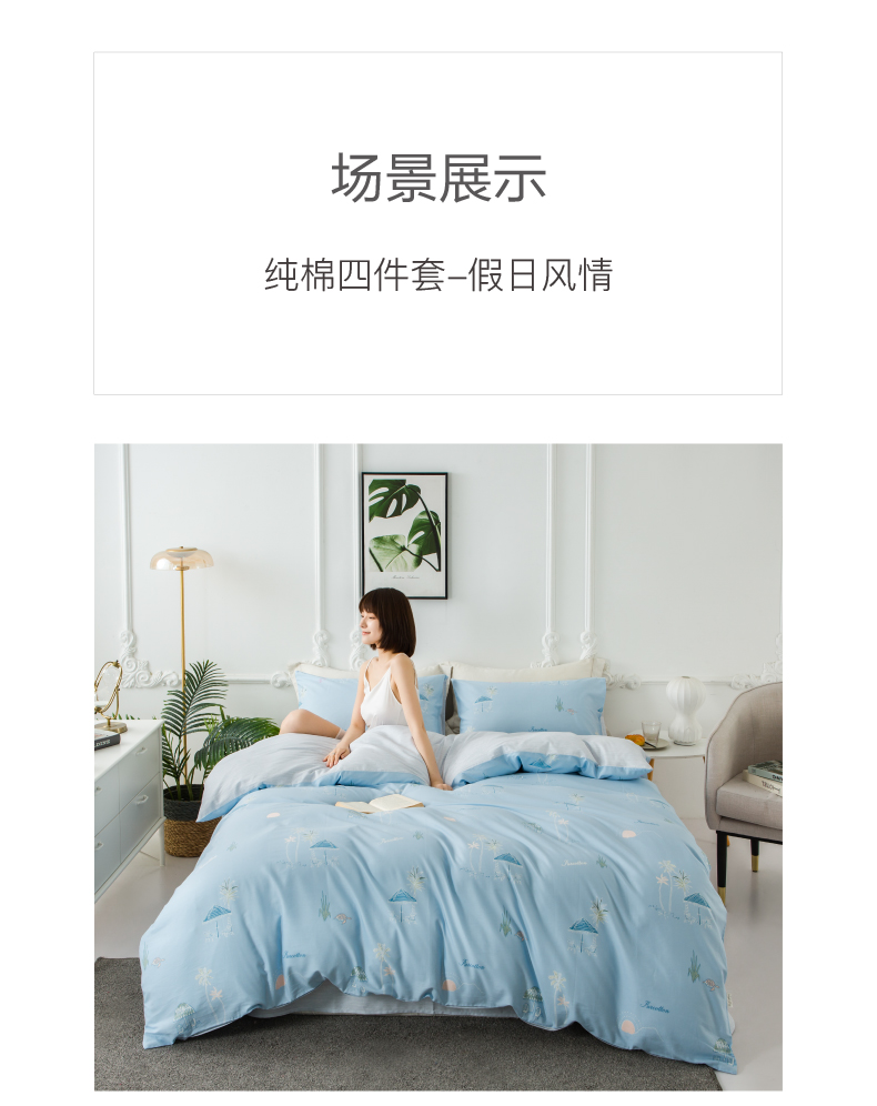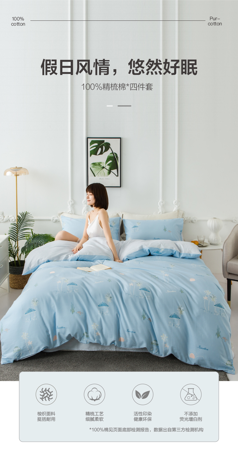 全棉时代精梳棉四件套1套 1.5米床 假日风情 蓝色