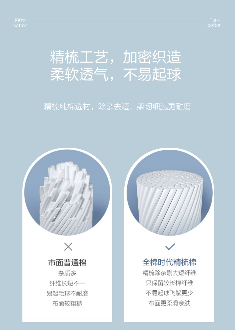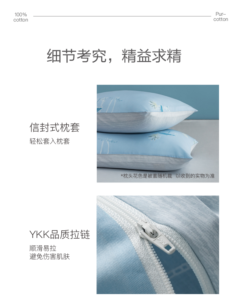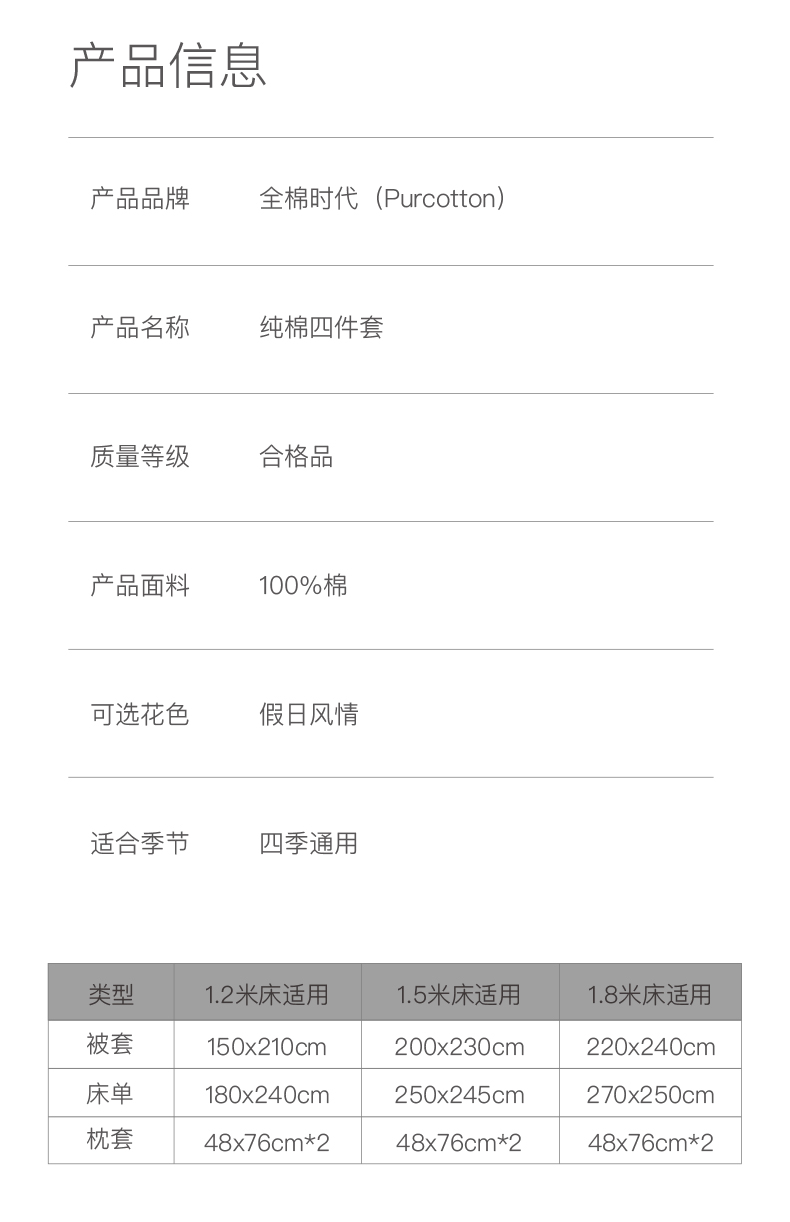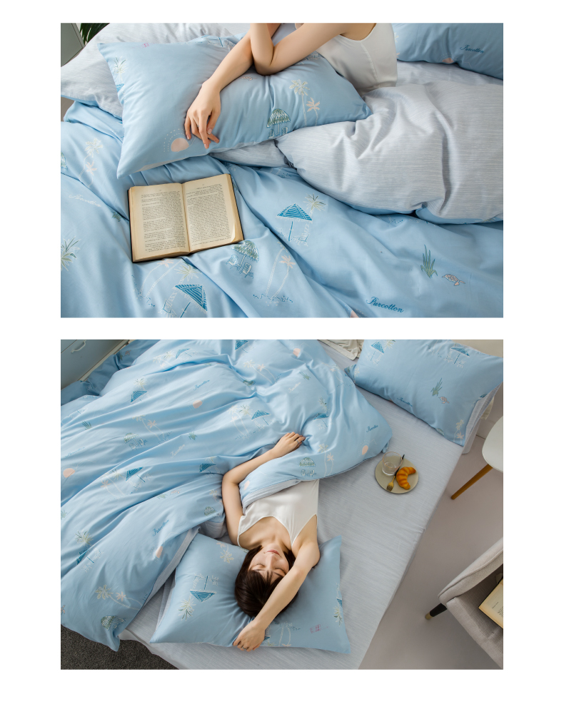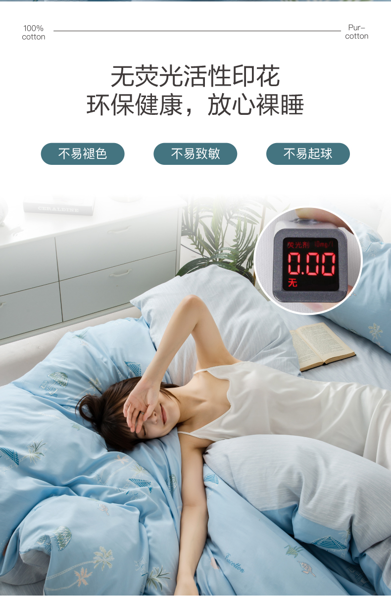 全棉时代精梳棉四件套1套 1.5米床 假日风情 蓝色