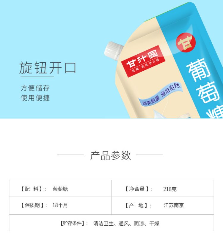 甘汁园葡萄糖218g*3袋 尼加拉蓝