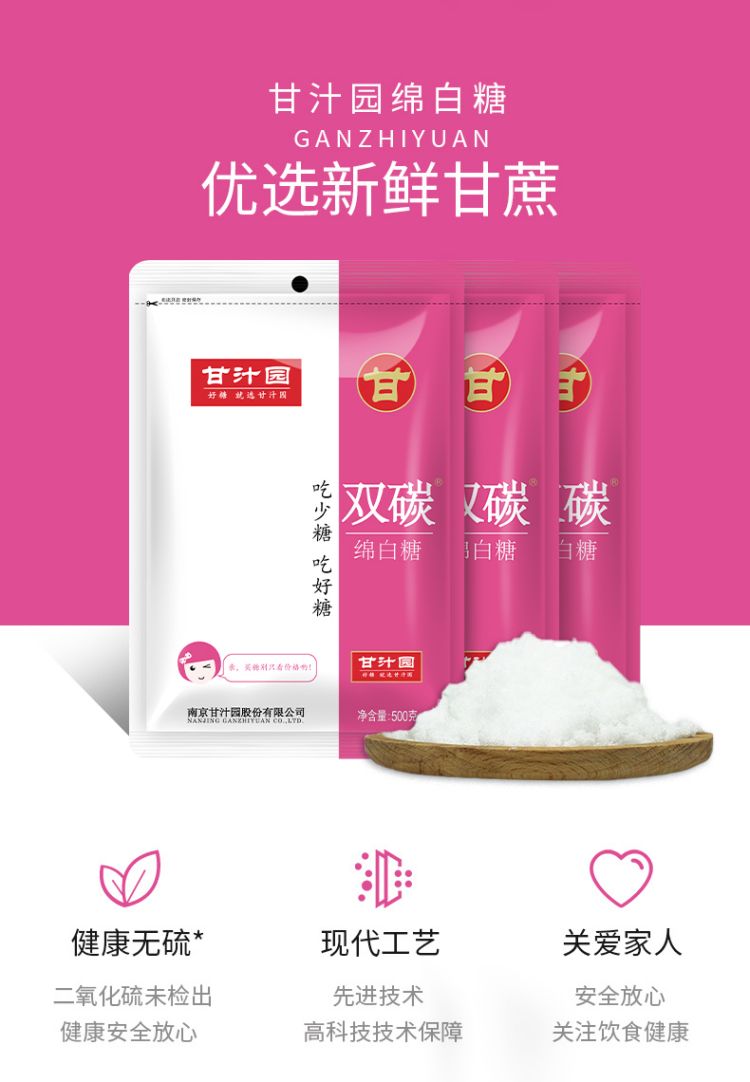 甘汁园双碳绵白糖500g*3袋 佳人粉
