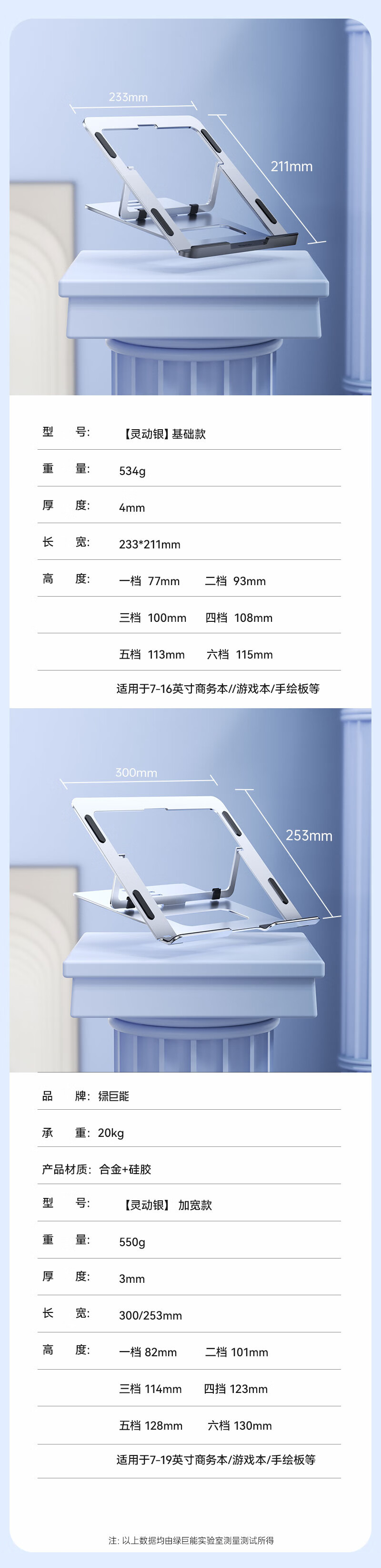 绿巨能(llano)LJN-ZJ110 笔记本电脑支架立式抬高散热器增高架/个 银色
