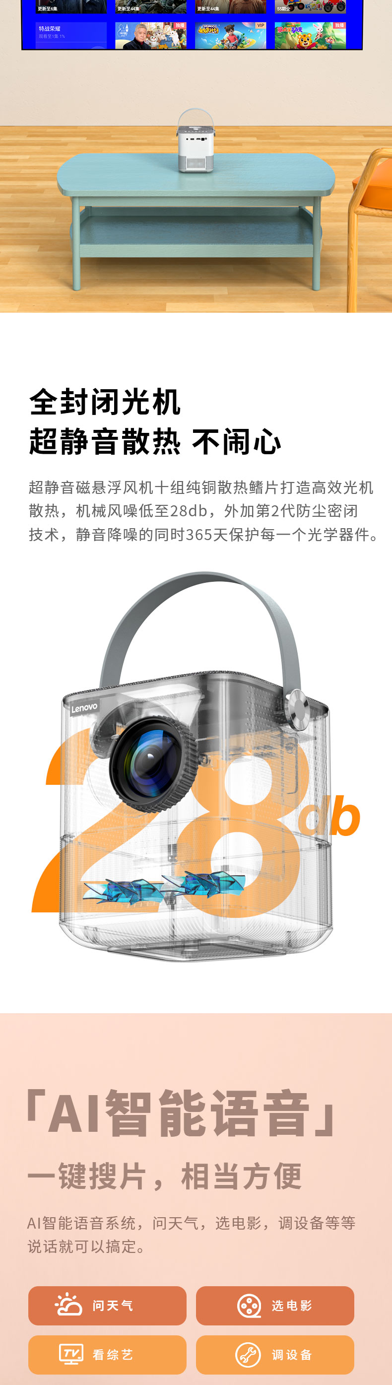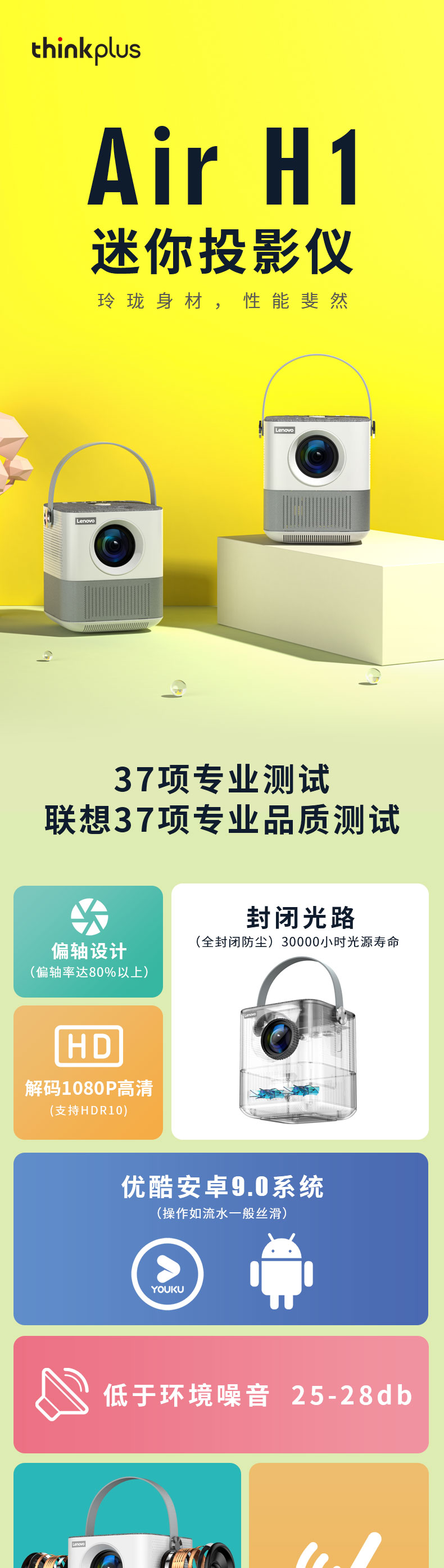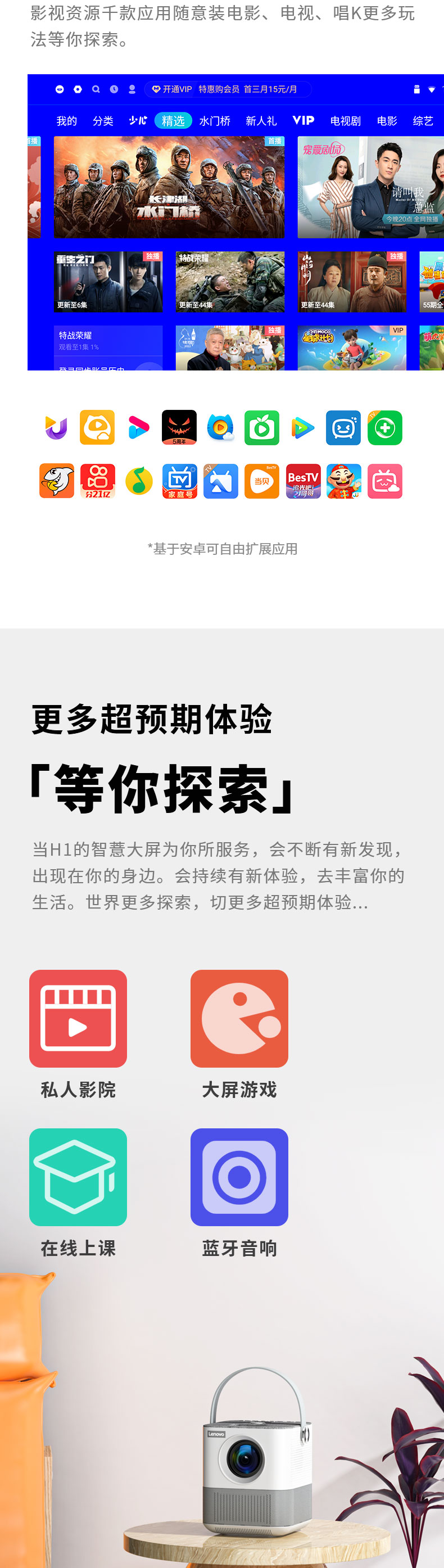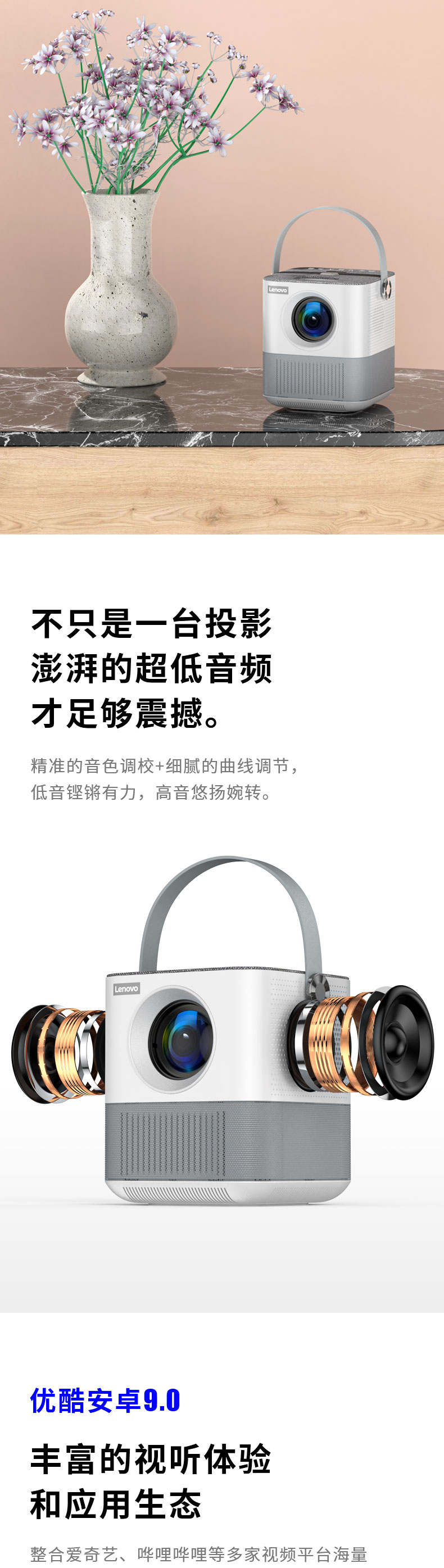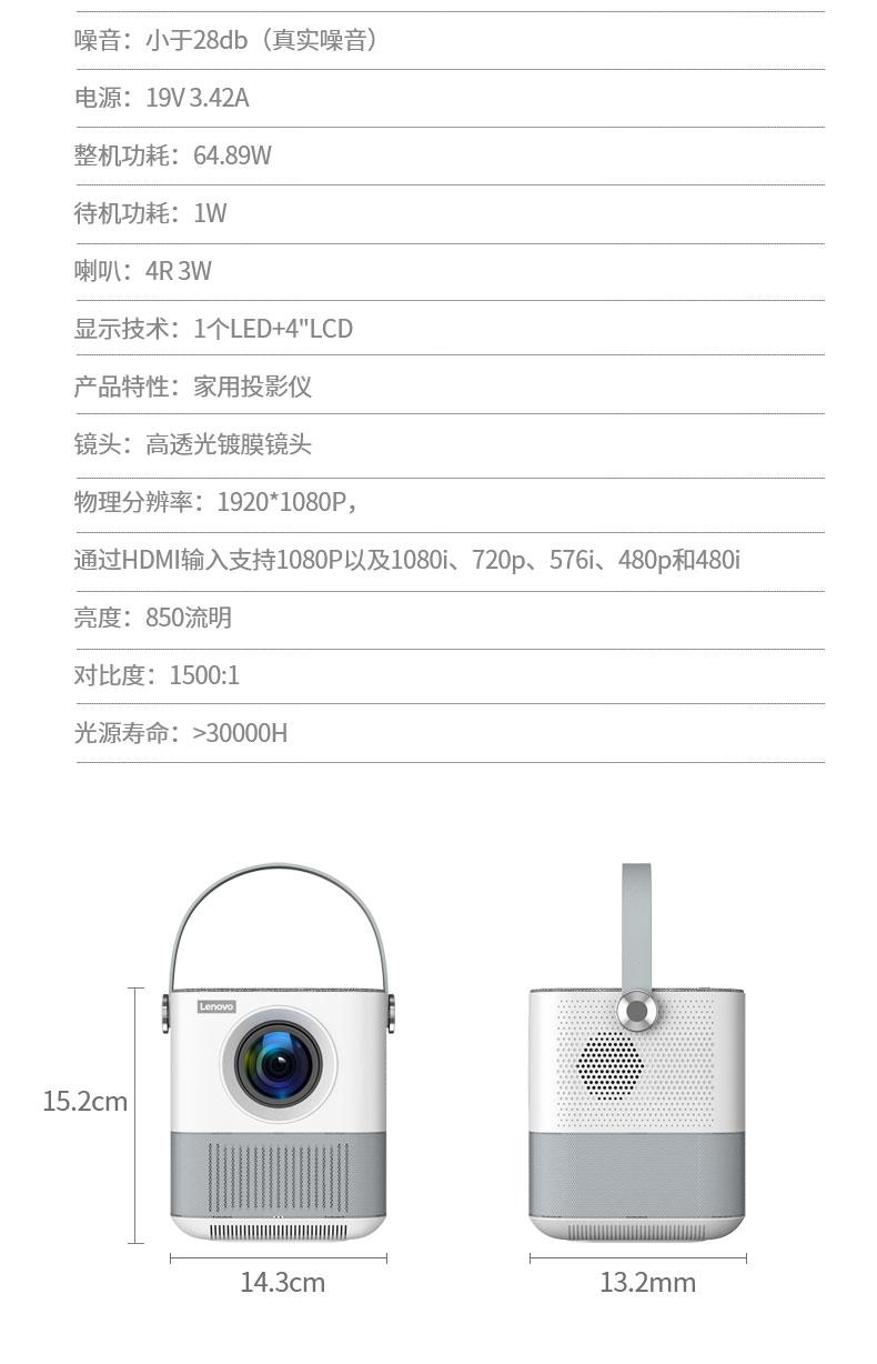 联想(Lenovo)thinkplus H1便携投影仪 迷你家用投影机卧室智能家庭影院(单位:台)) 白色