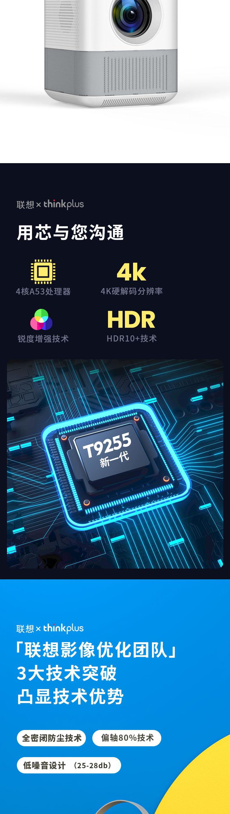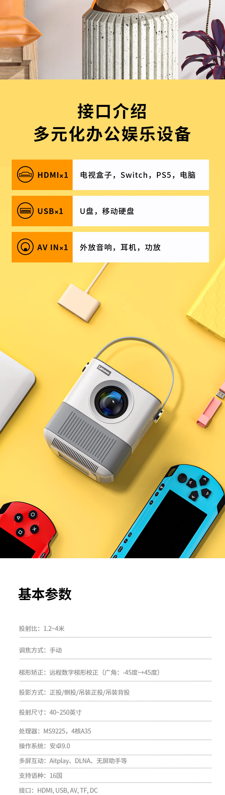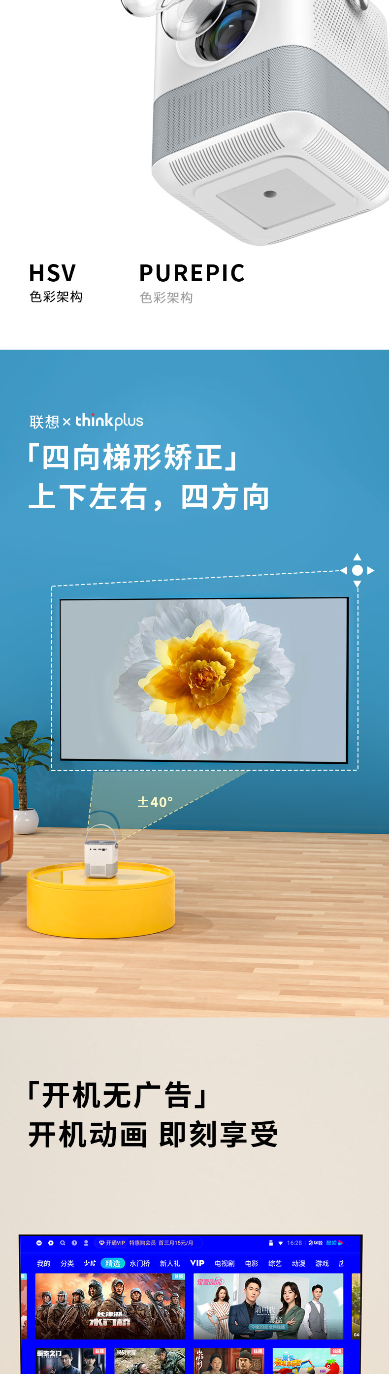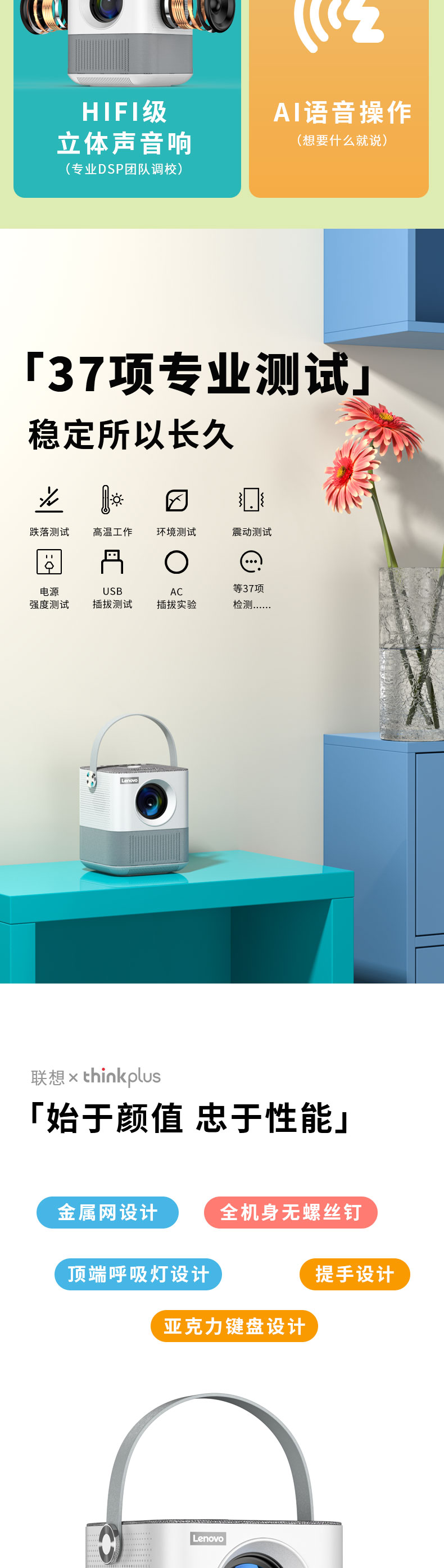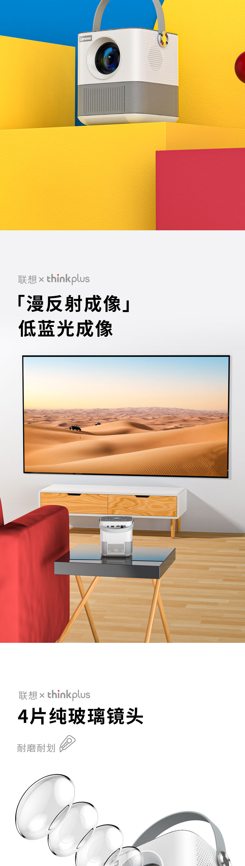 联想(Lenovo)thinkplus H1便携投影仪 迷你家用投影机卧室智能家庭影院(单位:台)) 白色
