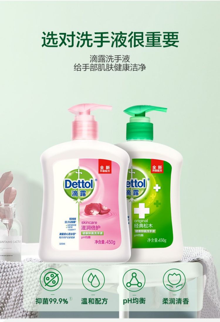 滴露洗 手液滋润倍护450g+经典松木450g(单位:组) 松石绿