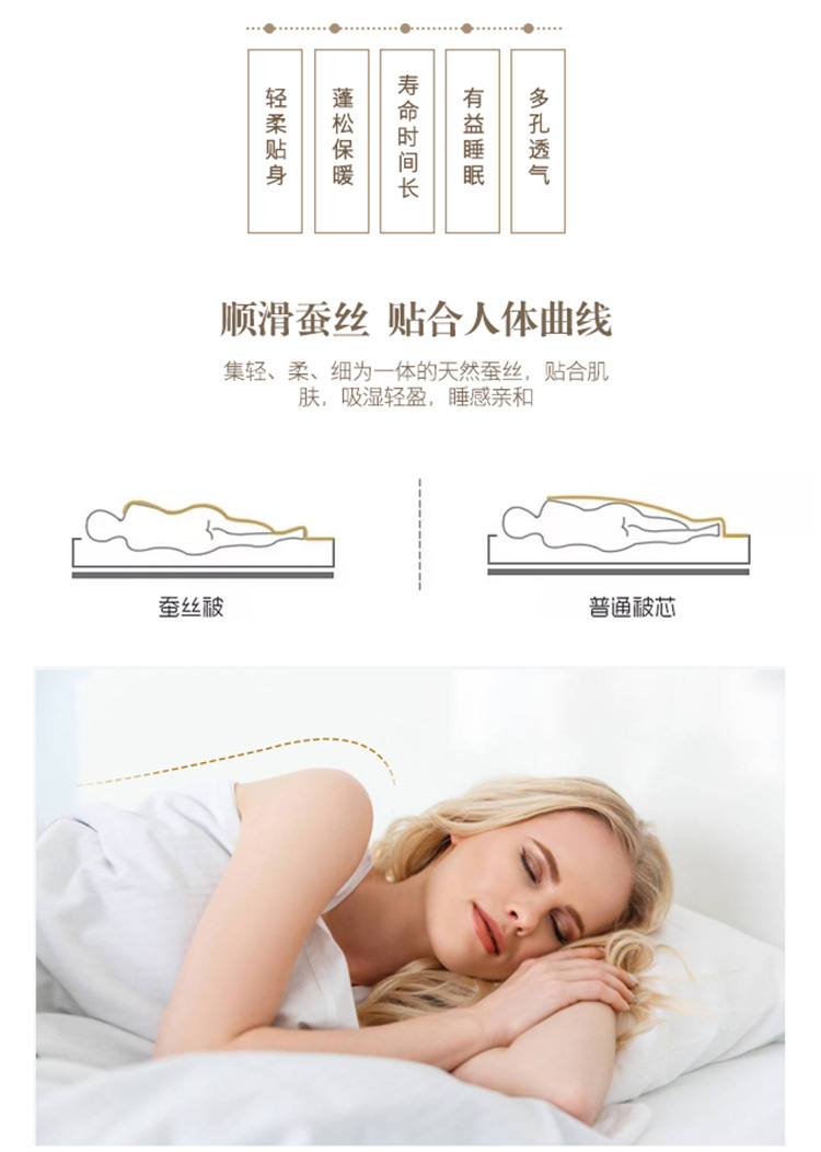 梦洁家纺舒柔蚕丝被200*230cm 白色 纯色