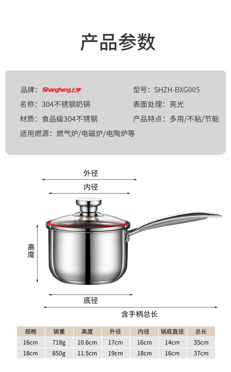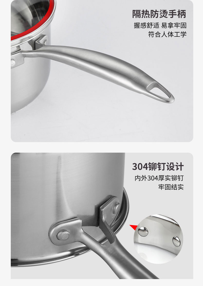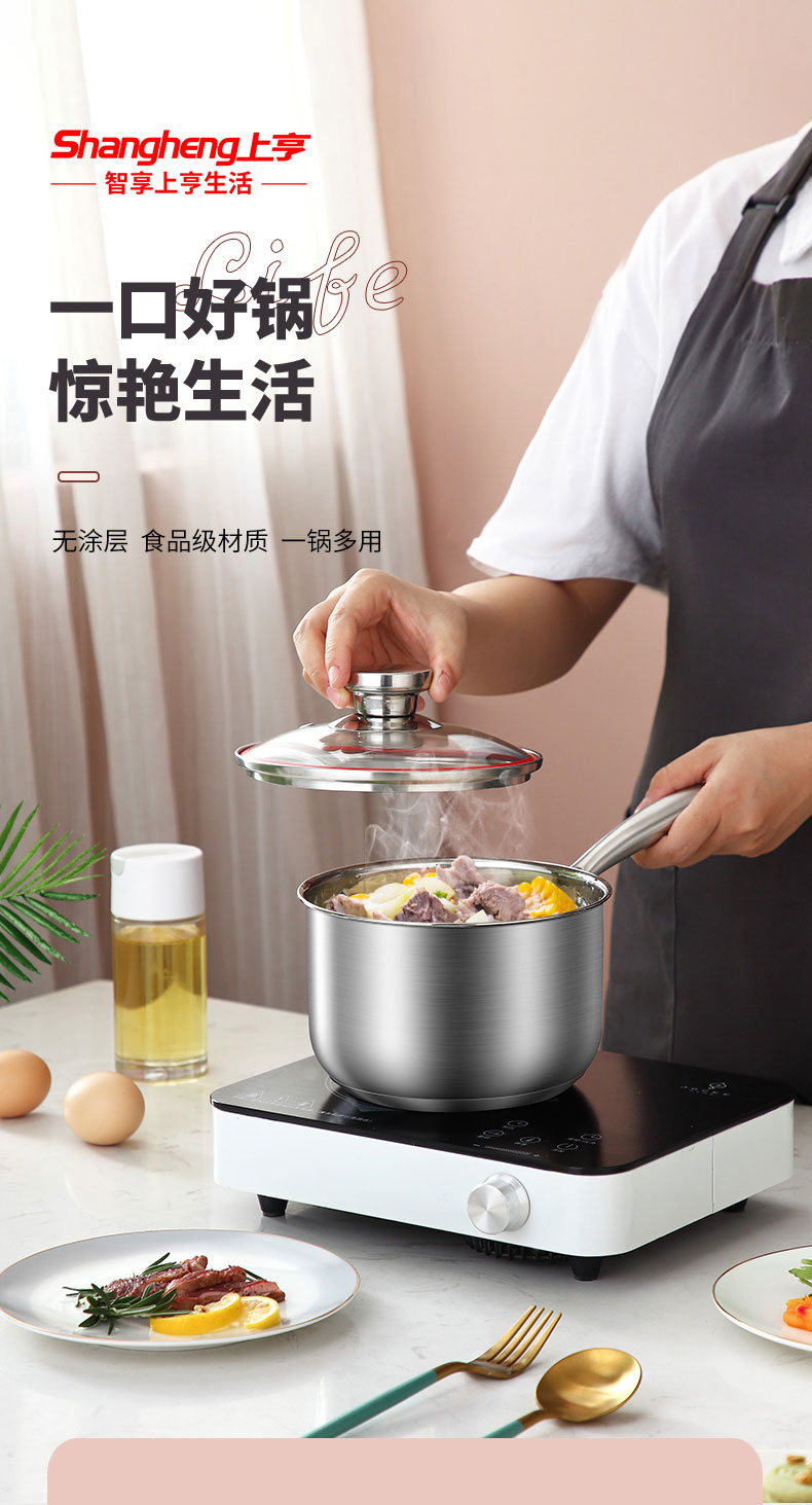 上亨(shangheng)304不锈钢小奶锅婴儿宝宝辅食锅汤锅泡面煮奶不粘汤锅 防烫(单位:张) 16CM食品级防烫无涂层奶锅