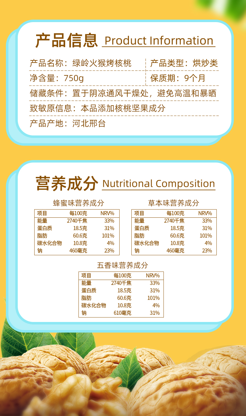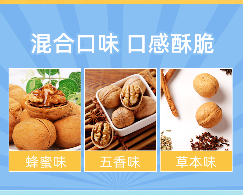 绿岭量贩装五星混合味烤核桃(蜂蜜/草本/五香)750g 深蓝色