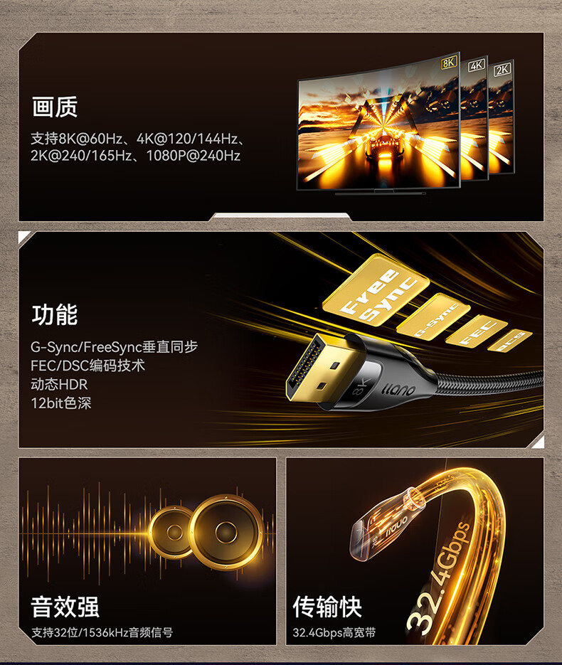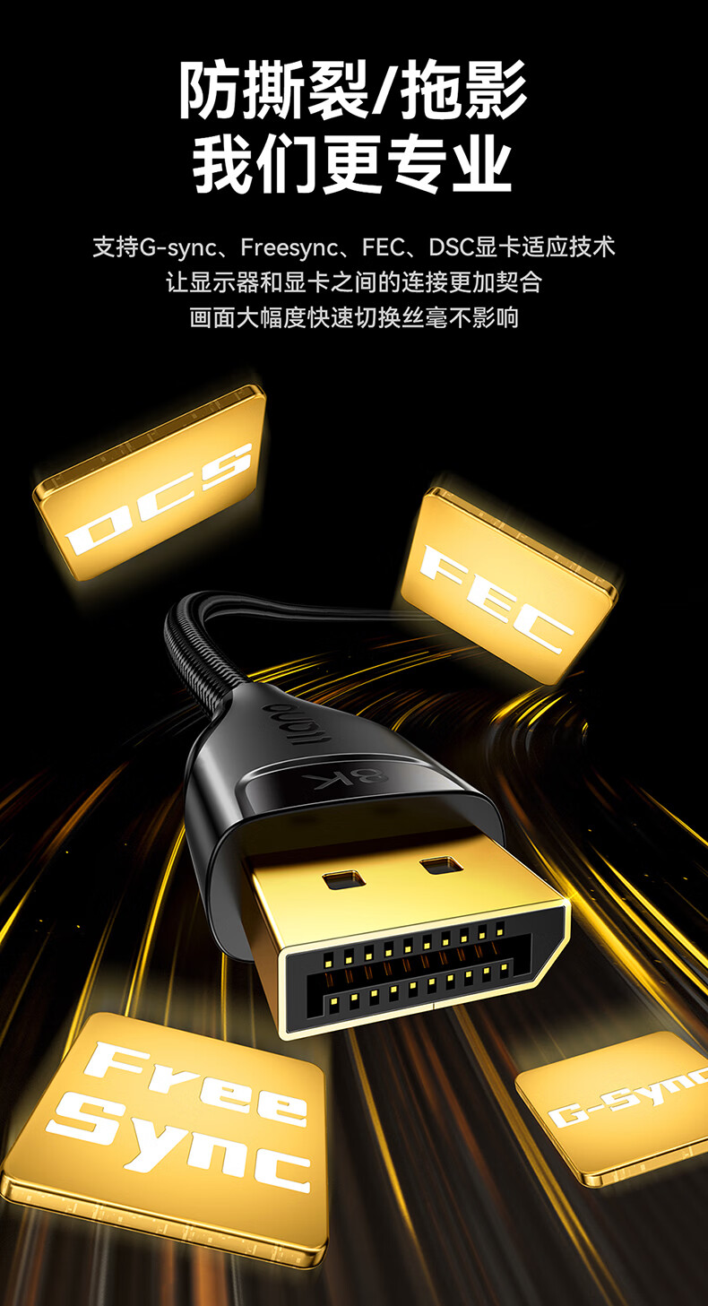 绿巨能 DP线1.4版 8K高清4K144Hz 2K165Hz DisplayPort公对公1.5米 黑色