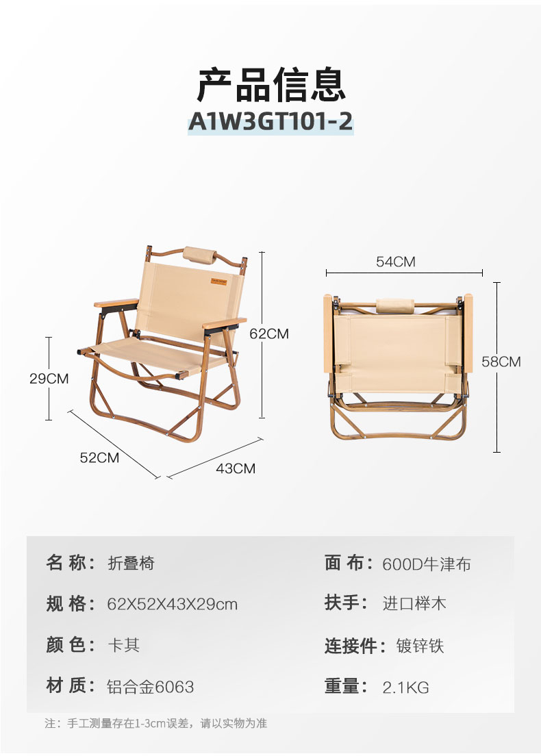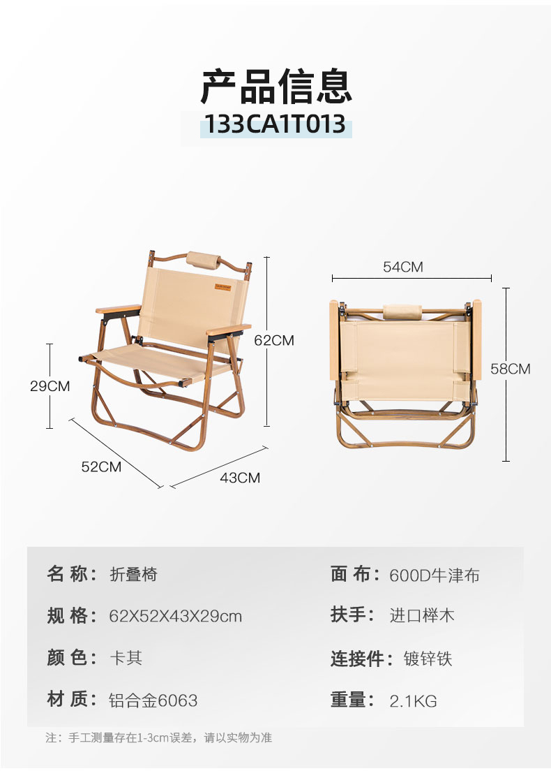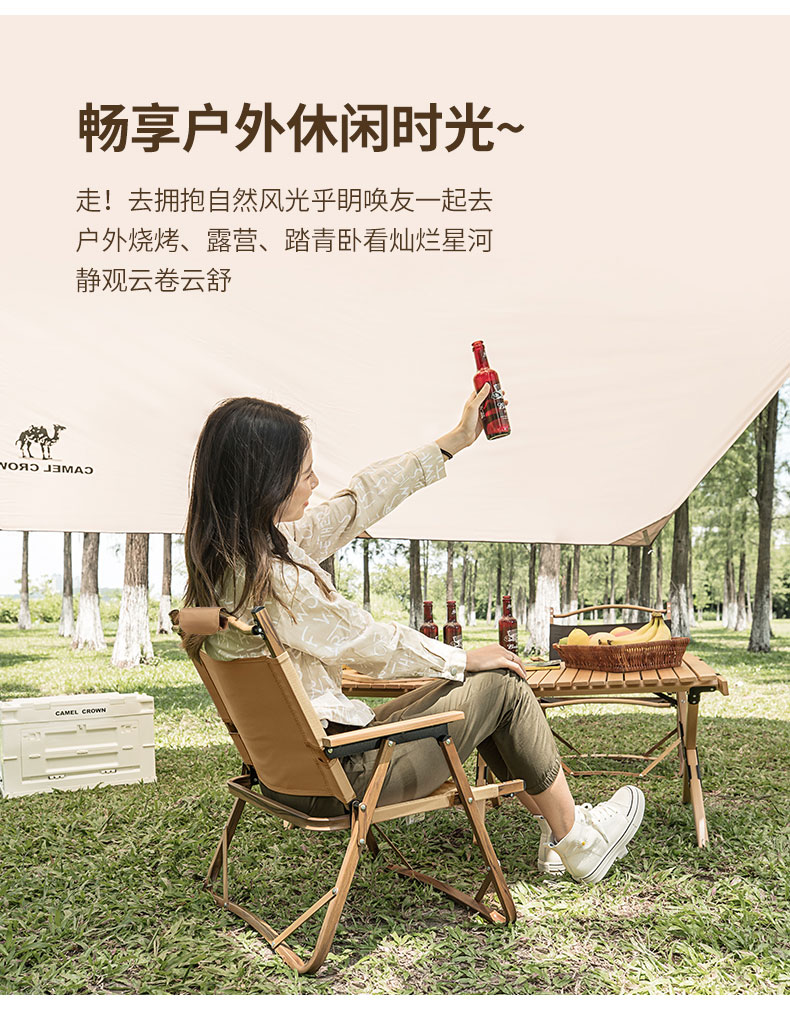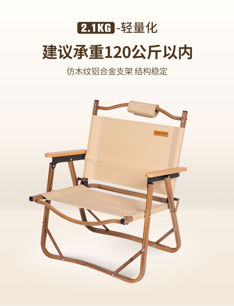 骆驼(CAMEL)户外露营轻便携折叠椅阳台休闲钓鱼椅子野营装备野餐克米特133CA1T013 卡其色