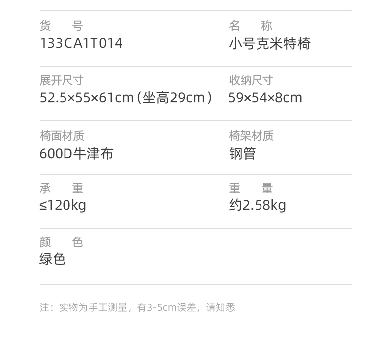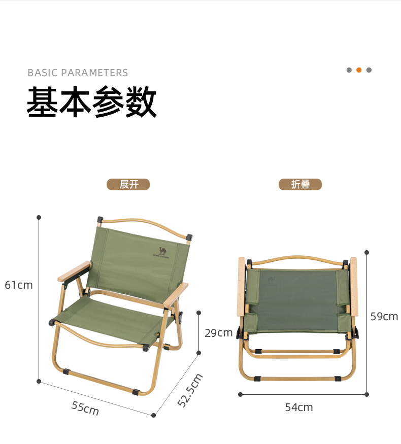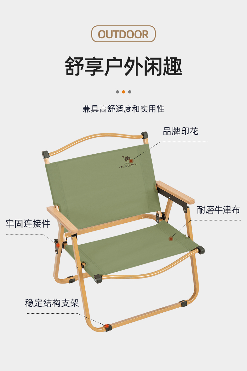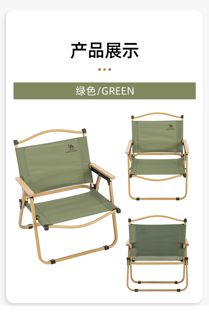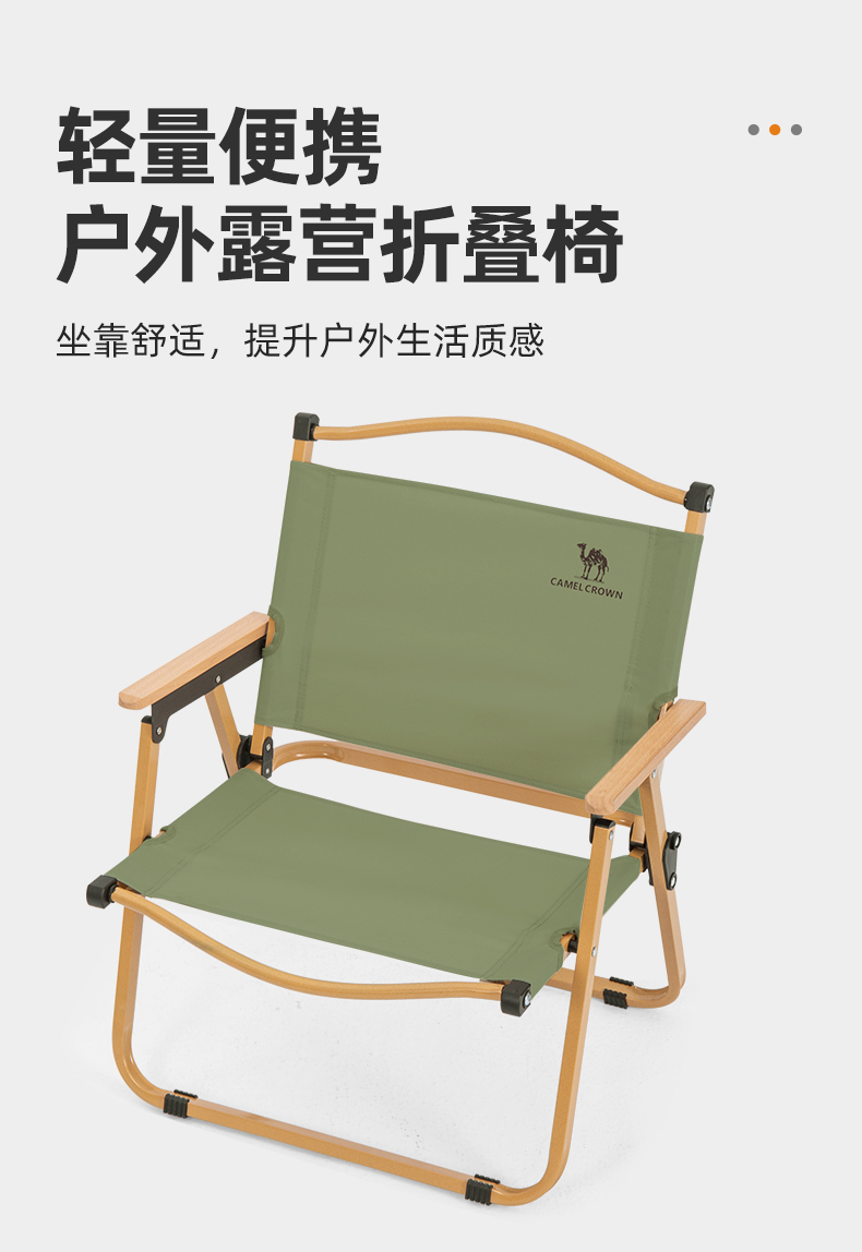 骆驼(CAMEL)户外露营折叠椅便携式靠背写生躺椅野营钓鱼凳美术生椅子克米特椅133CA1T014 军绿色