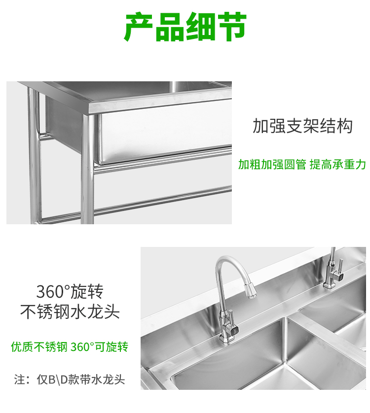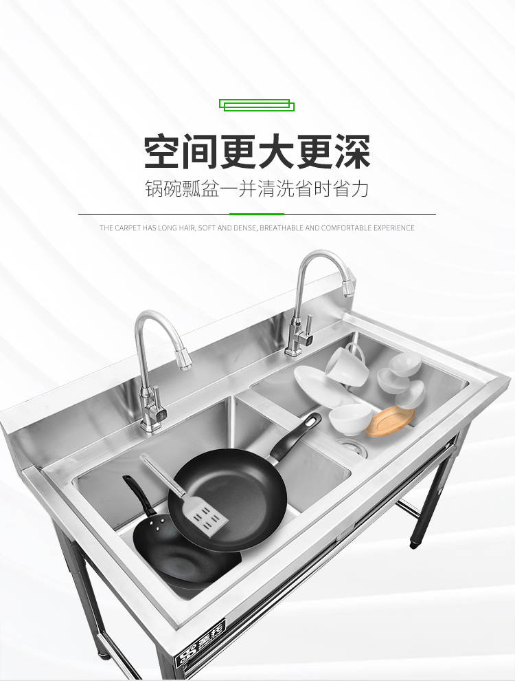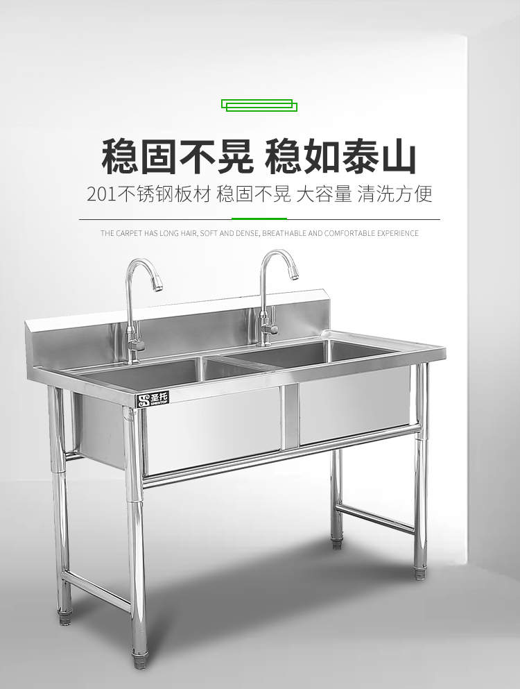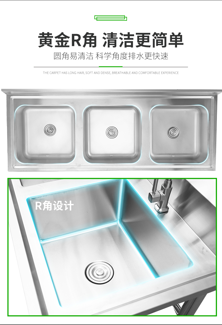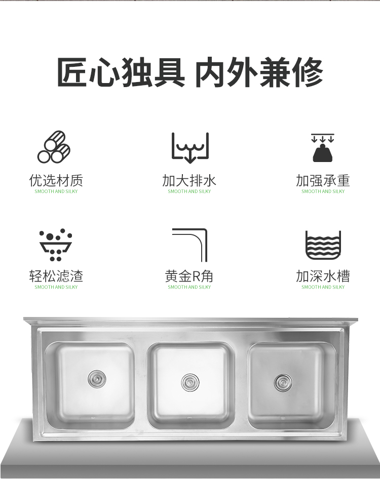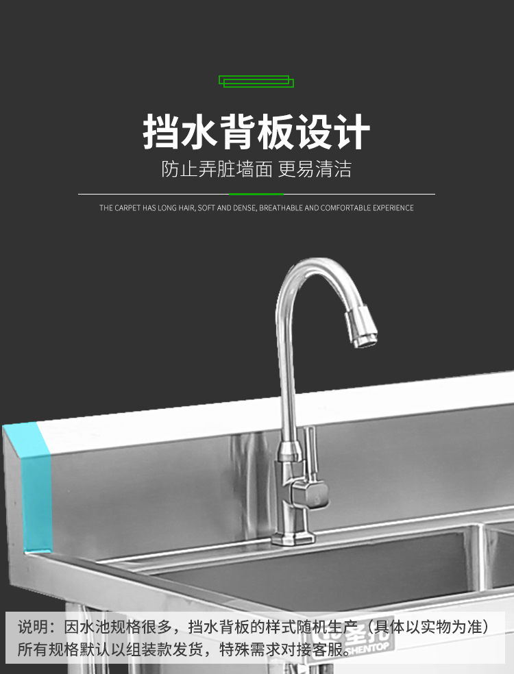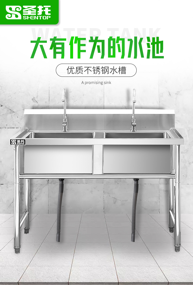 圣托(Shentop)酒店饭店食堂三星水池 不锈钢三槽洗菜盆带水龙头 STTC-BA18B 不锈钢色