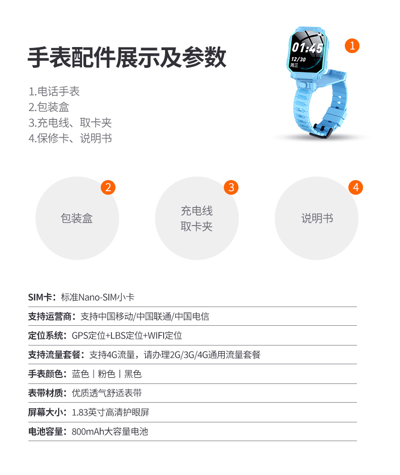 智惠心 视频通话儿童电话手表 Y61M 1.83寸 蓝色(单位:台)