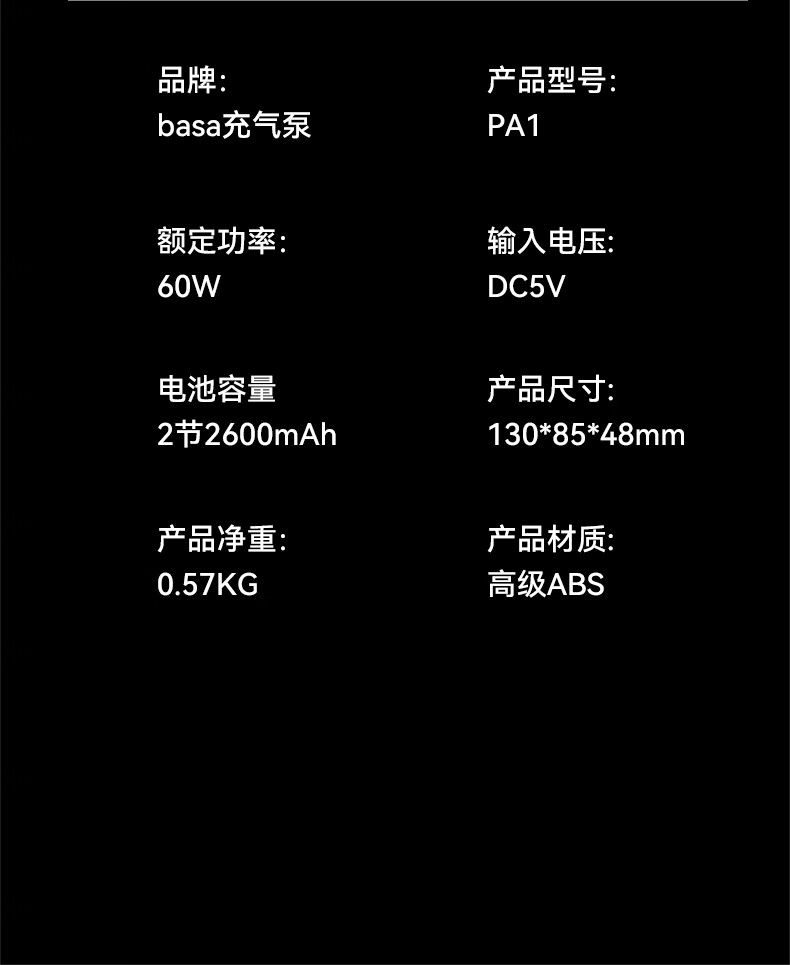 basa 无线充气泵 PA1 60W 魅影灰(单位:个)