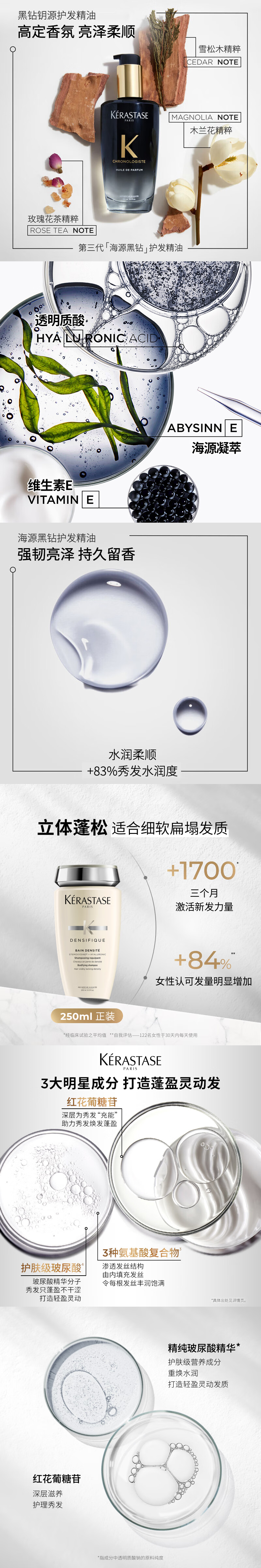 卡诗(KERASTASE) 黑钻白金 250ml+100ml 赋活洗发水+黑钻精油 混色(单位:套)