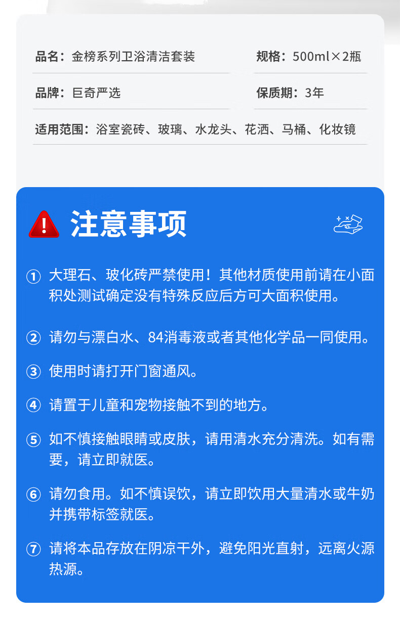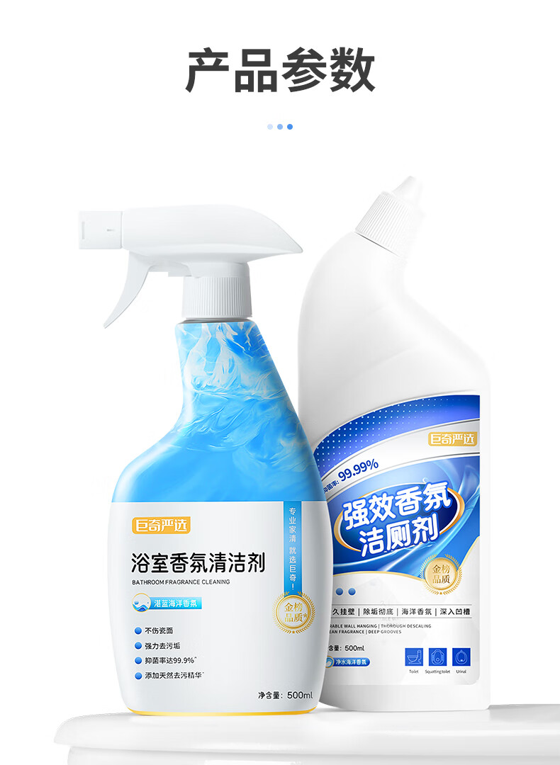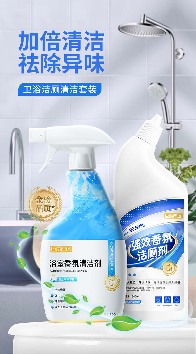 巨奇(JUQI) 金榜系列 卫浴洁厕清洁四件套 500ml+500ml(含除霉啫喱+双色洁厕块+缝隙刷) 蓝色(单位:套)